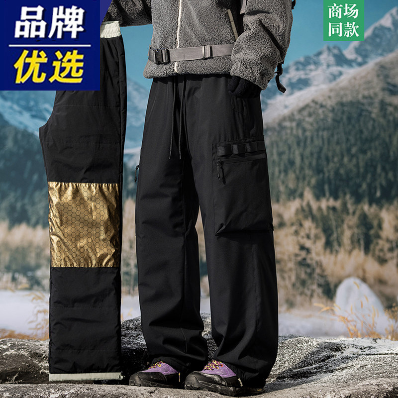 冬季加厚户外运动羽绒棉裤男士保暖工装裤宽松直筒休闲长裤子男款
