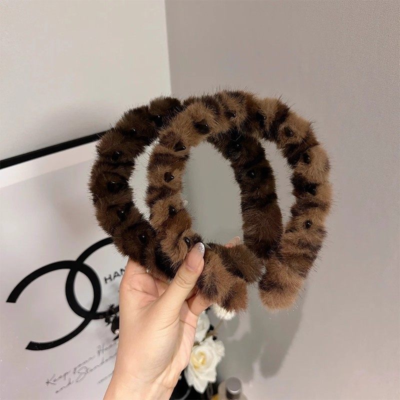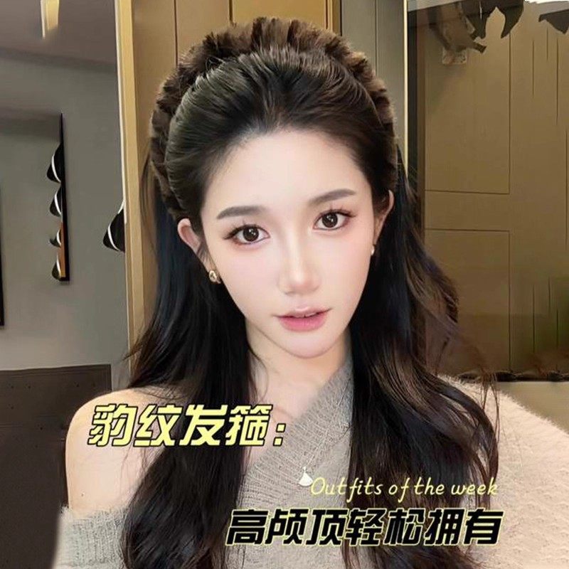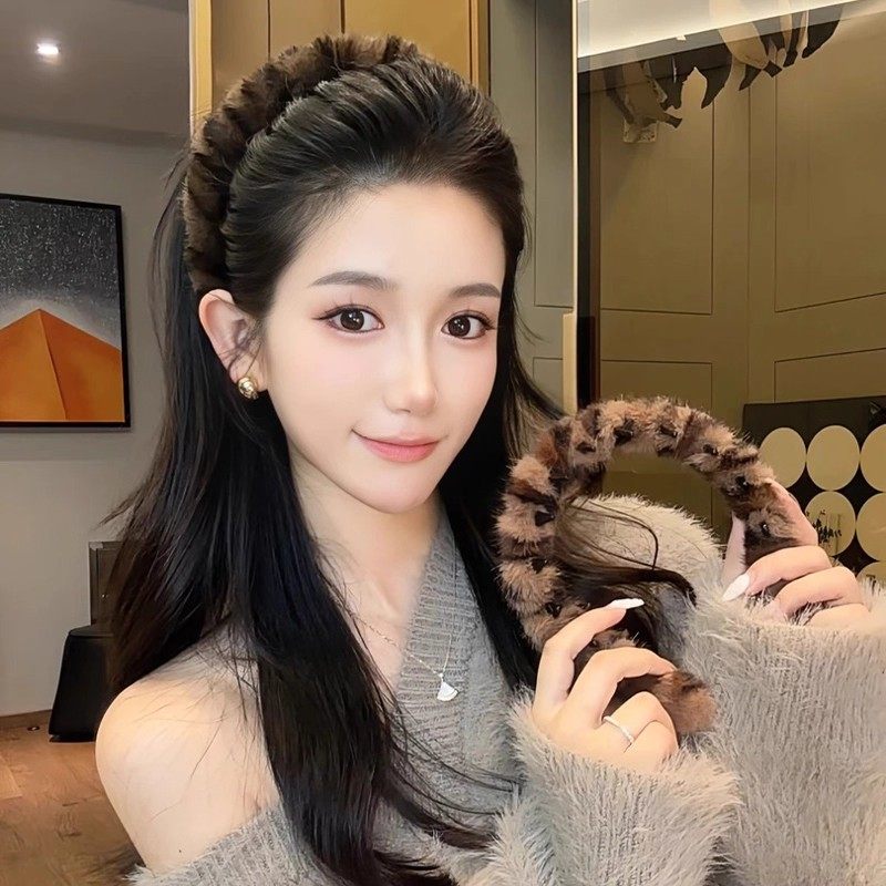 秋冬豹纹发箍女2025新款毛毛高颅顶外出百搭女士女款毛绒头箍发卡