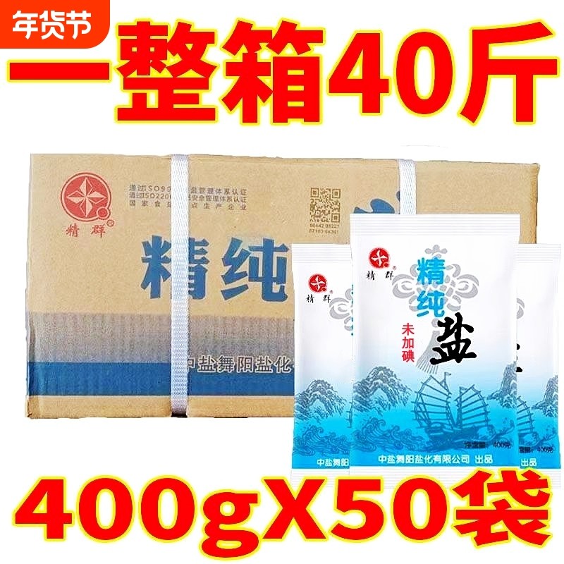 精群盐加碘未加碘食用盐400g*50袋精纯盐一整箱厨房专用细盐批发