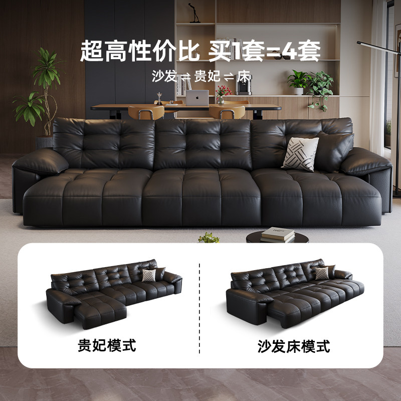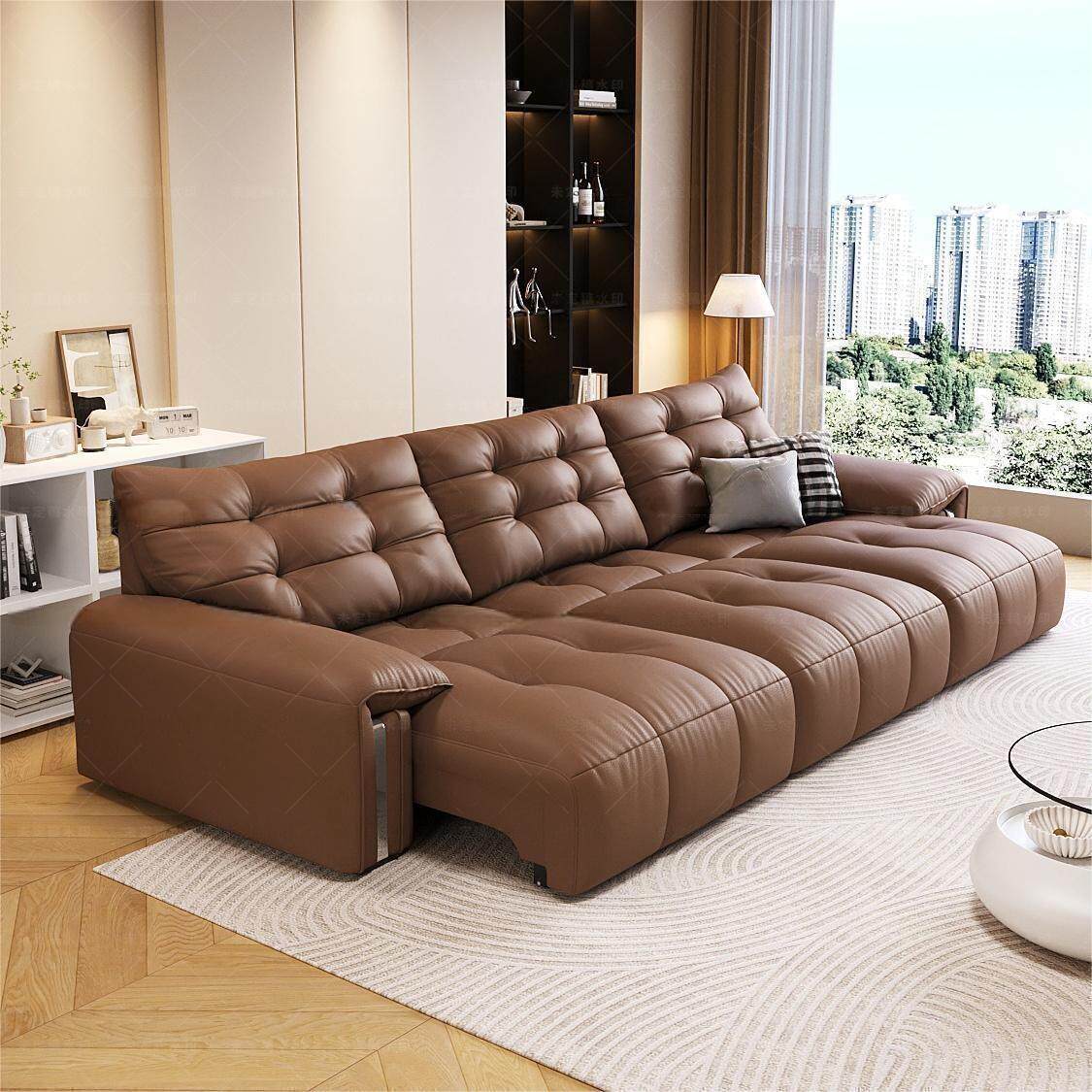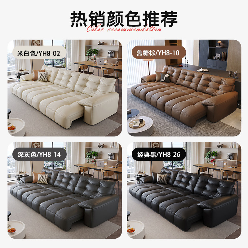 司朴意式极简真皮沙发客厅大小户型零靠墙直排伸缩功能电动沙发床