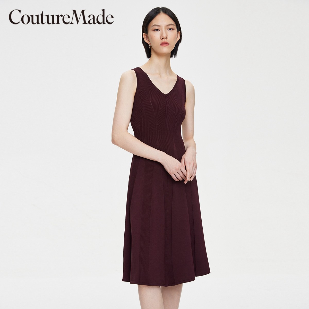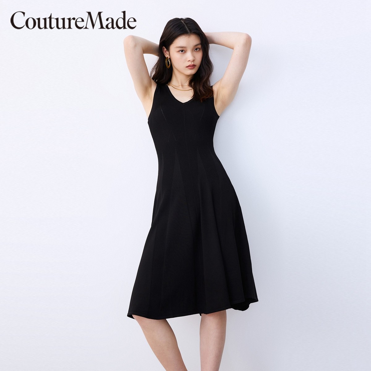 Vero Moda奥莱连衣裙秋季新款优雅气质针织收腰V领无袖A摆时尚