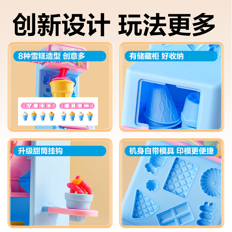 得力彩泥冰淇淋机橡皮泥美食机儿童玩具模具生日礼物彩泥机套装