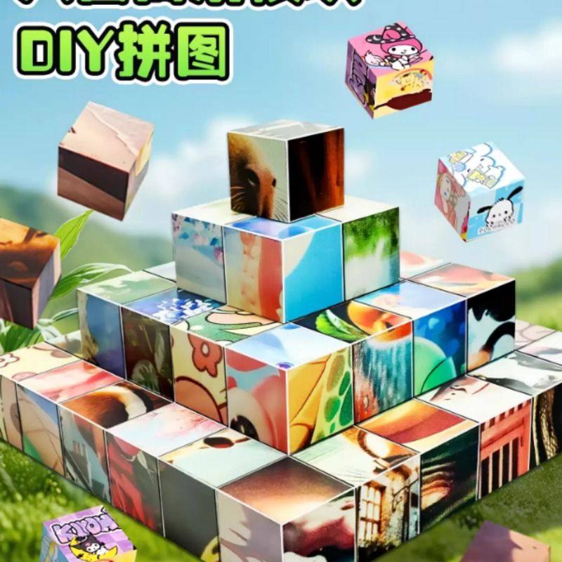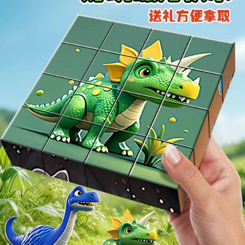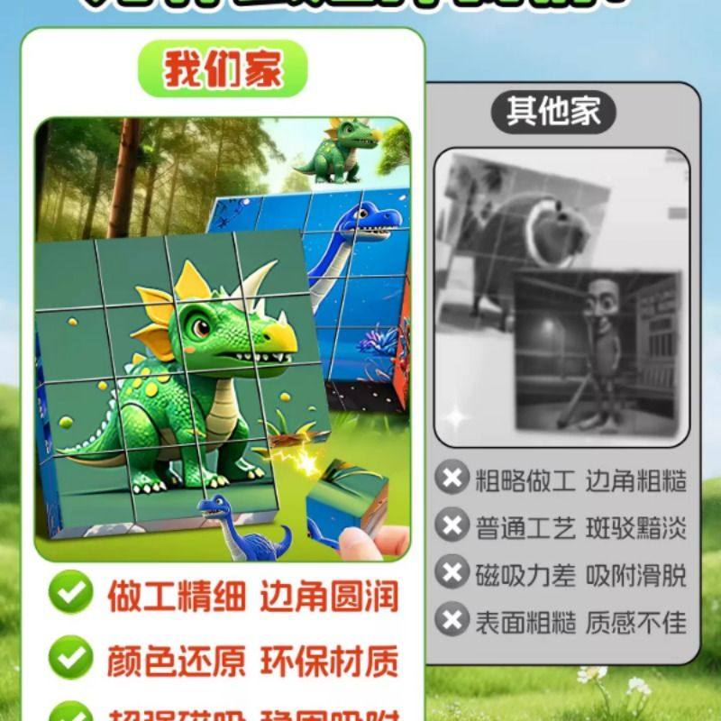 磁力方块拼图早教益智动物积木卡通六面画立体霸王龙拼图玩具塑胶