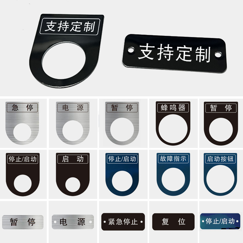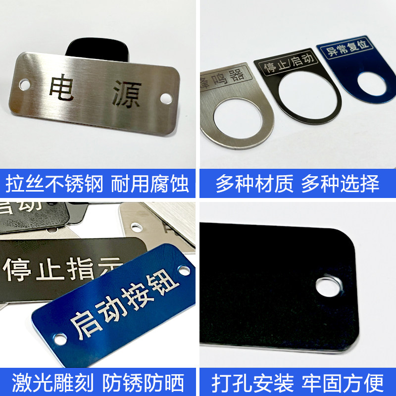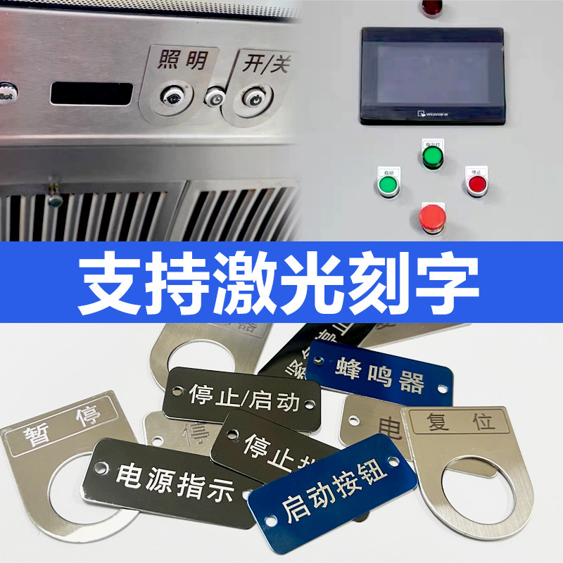 电气按钮标识牌22mm孔激光不锈钢急停启动开关指示牌设备铭牌定制
