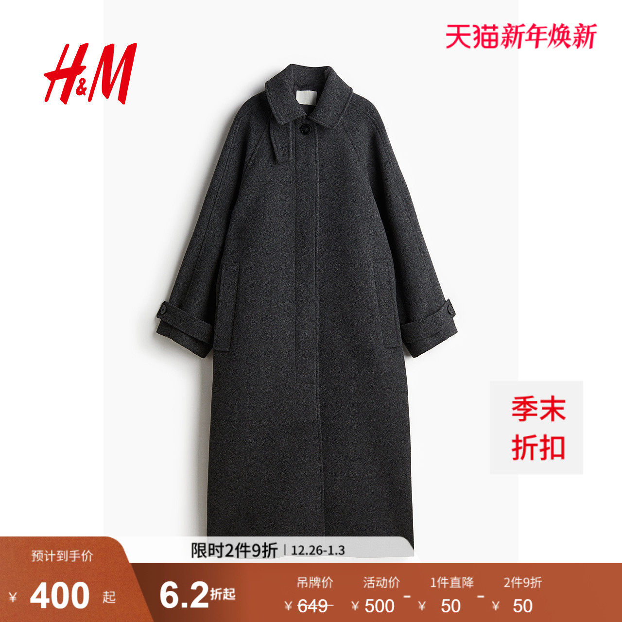 HM女装毛呢外套冬季翻领单排扣宽松大廓形长大衣1249582