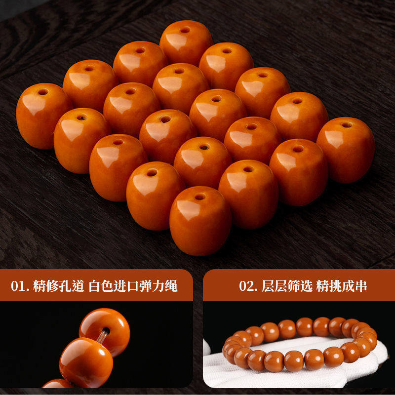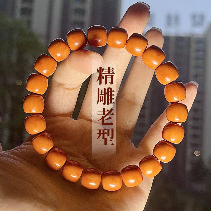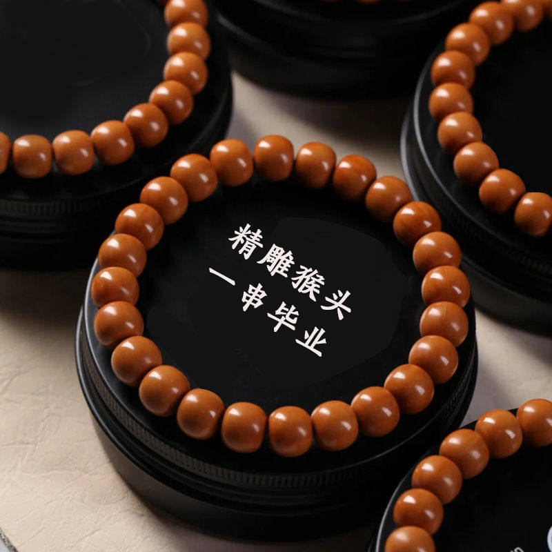 精品猴头光珠手串老型桶直切小凤羽雕刻京八棱文玩佛珠盘玩鲨鱼背