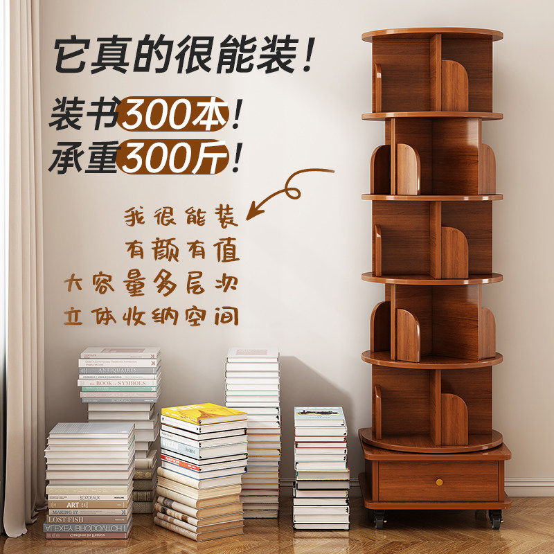 360度可旋转书架学生书柜客厅转角书架落地置物架一体靠墙可移动