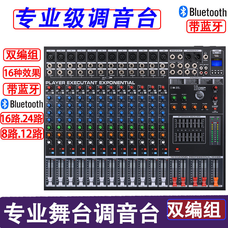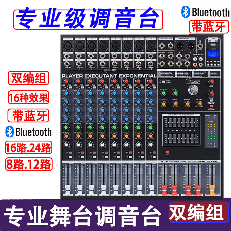 调音台12/16路专业舞台演出录音会议婚庆直播声卡家用带蓝牙混响