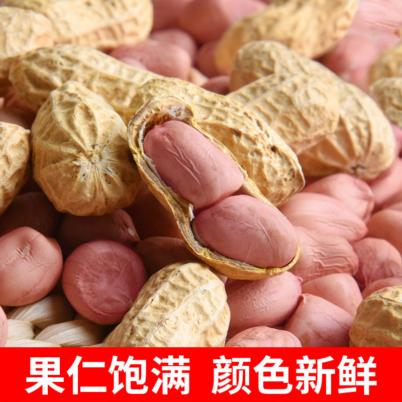 新鲜红皮带壳生花生四粒红花生米农家自种晒干货高产花生红皮花生