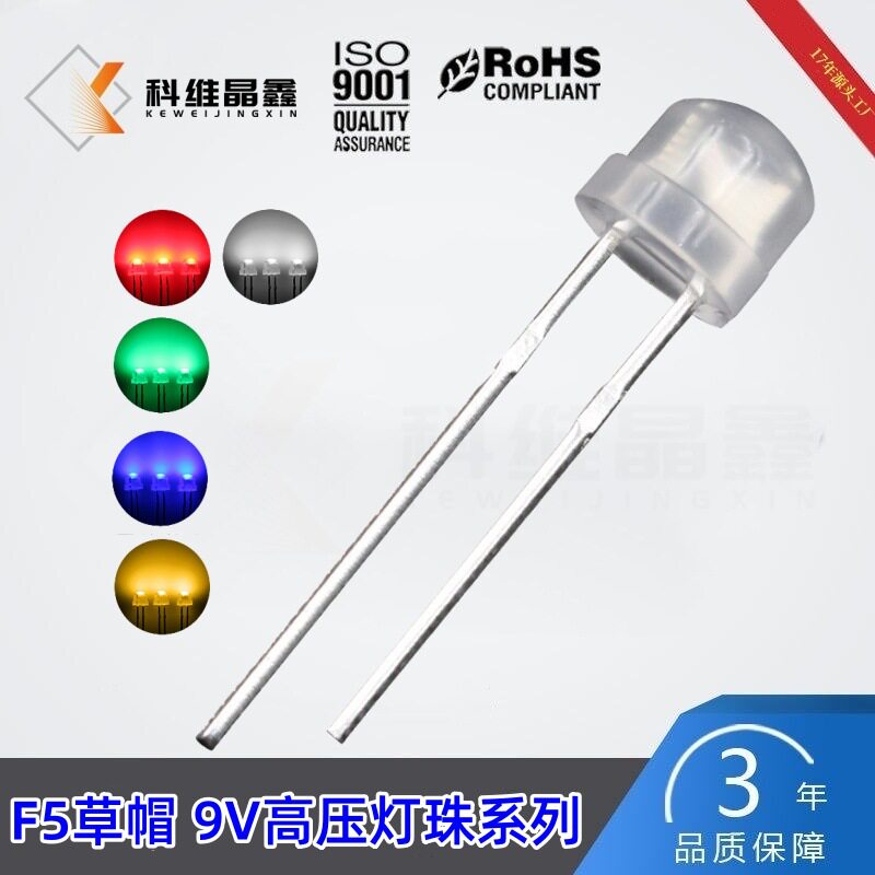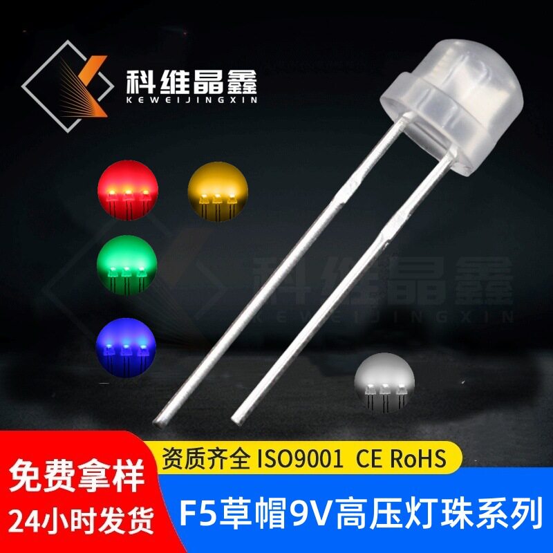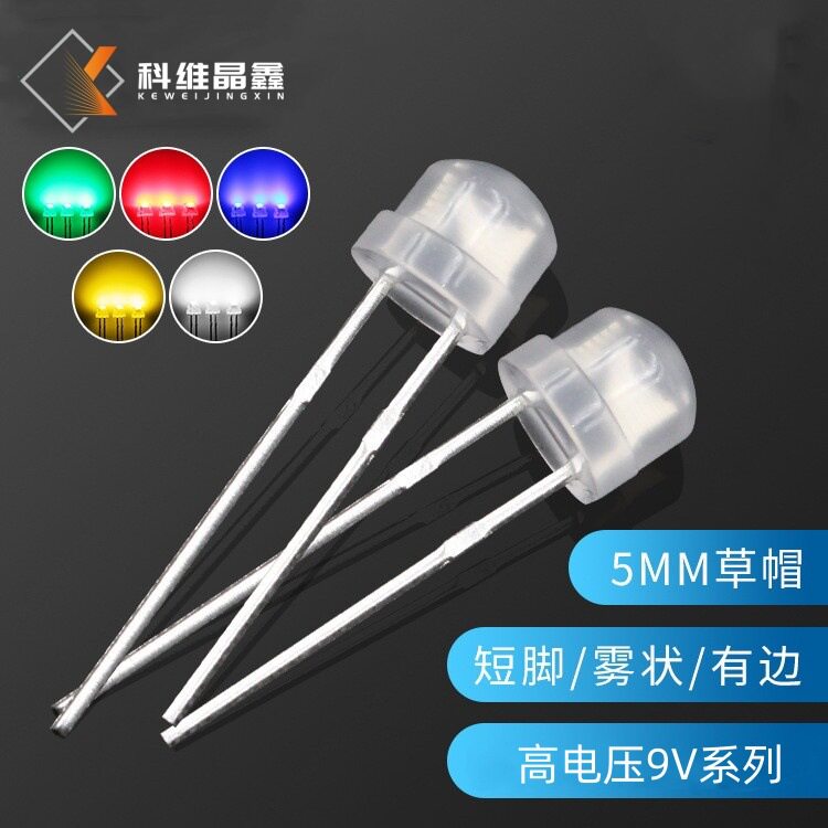 4.8mm草帽9V白色LED发光二极管 雾状红黄蓝绿高压F5草帽LED灯珠