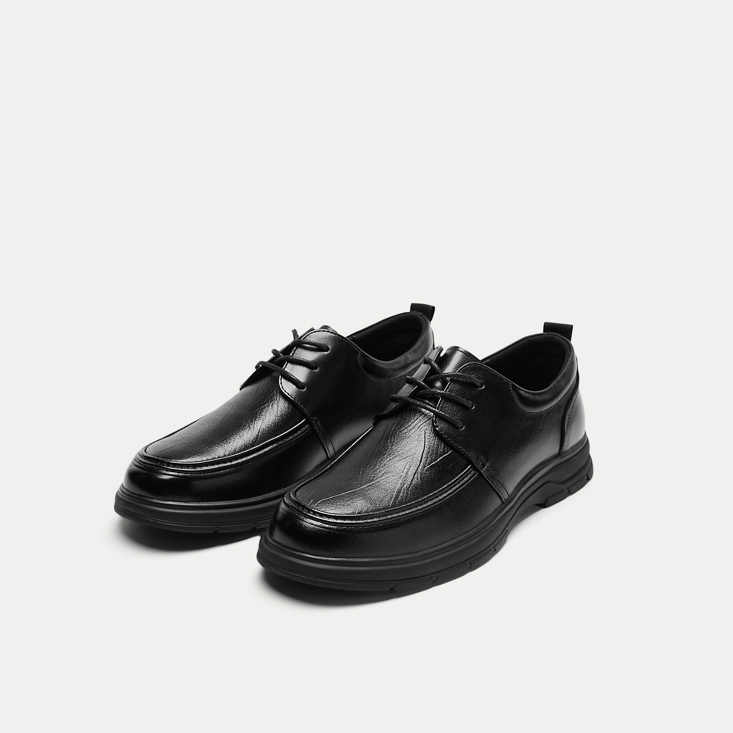 免开胶真皮休闲皮鞋男款软皮厚底增高透气商务系带平底缝线德比鞋