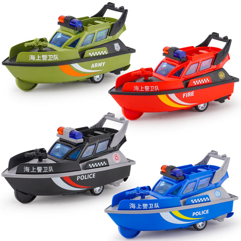 儿童玩具船模型益智男孩3岁4警车快艇轮船惯性车小汽车宝宝救生艇