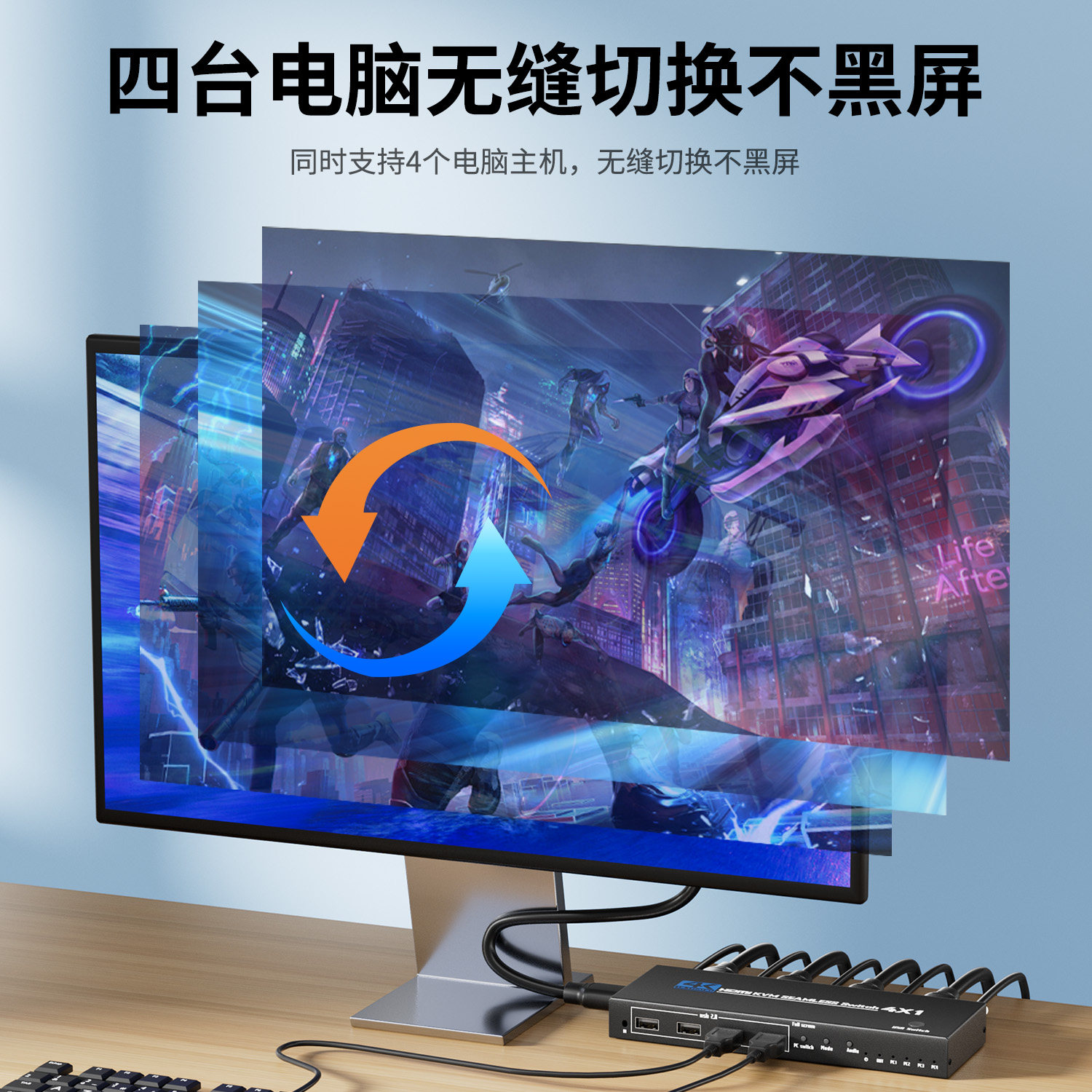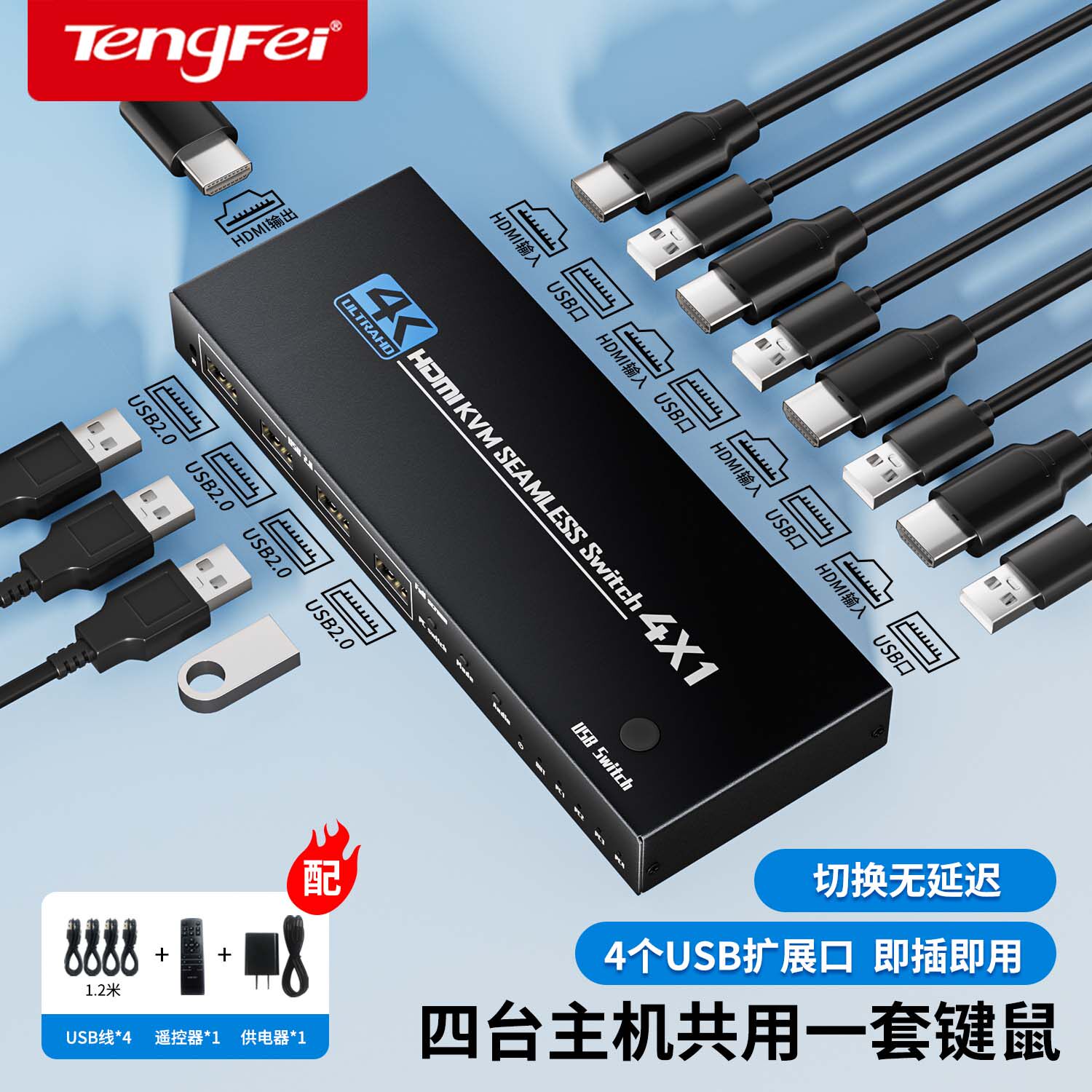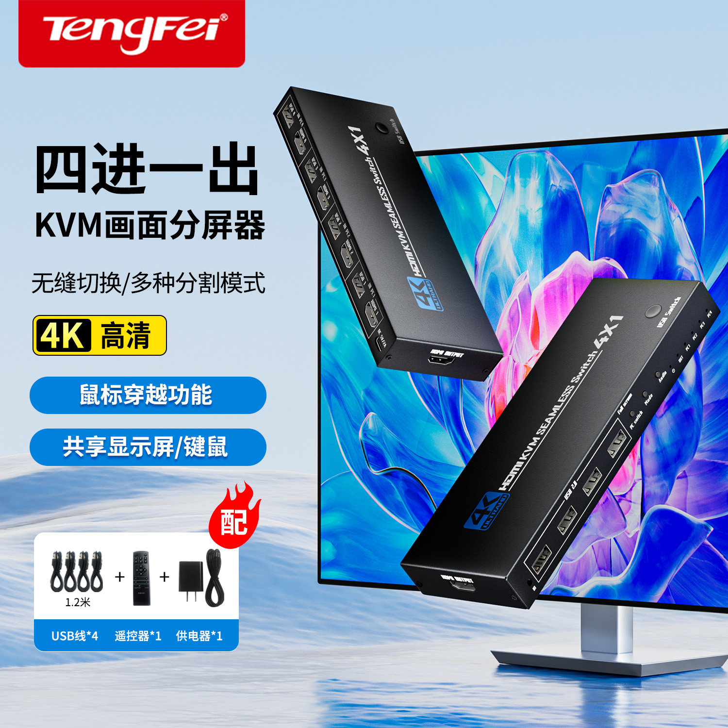 腾飞分屏器HDMI四进一出无缝4K秒切换四画面分割高清视频多屏显电脑主机屏幕dnf游戏搬砖4开同时显示4画面