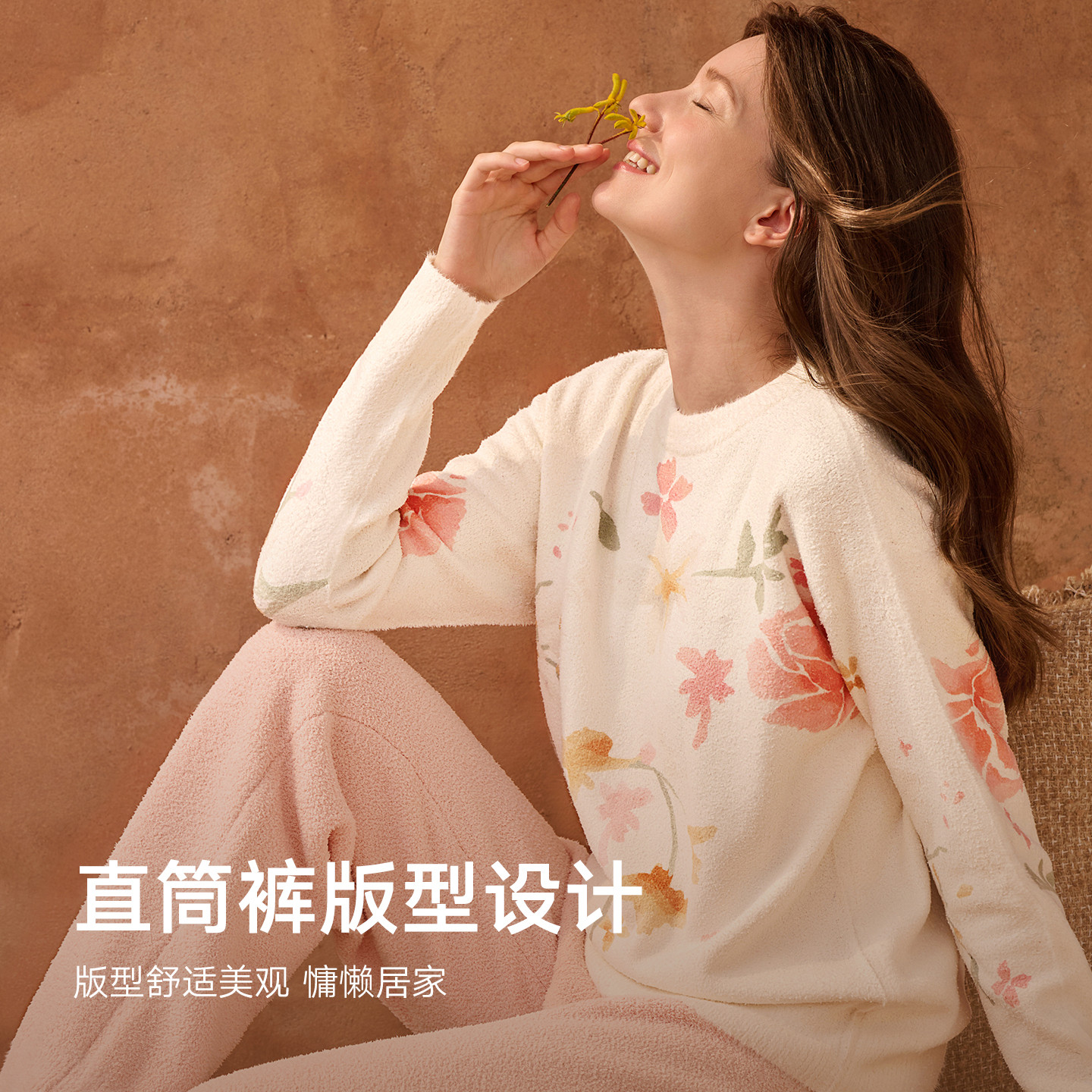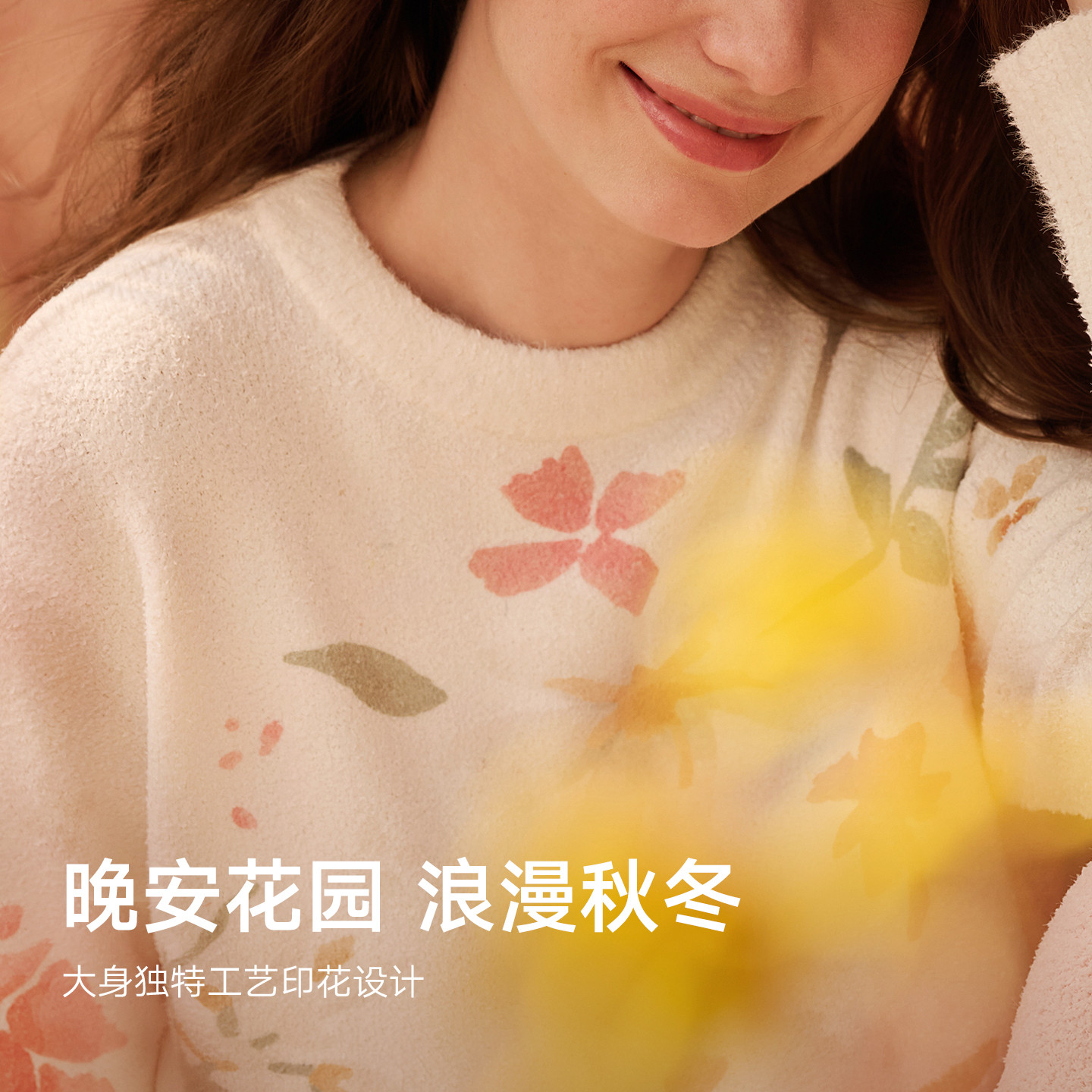 秋季花园|曼妮芬秋冬雪尼尔绒感印花女士厚圆领长袖家居套装睡衣