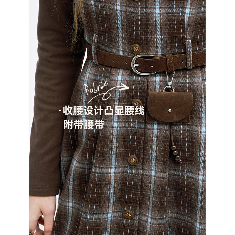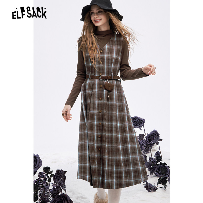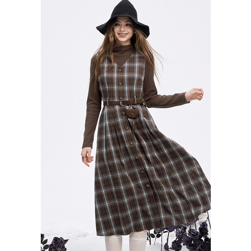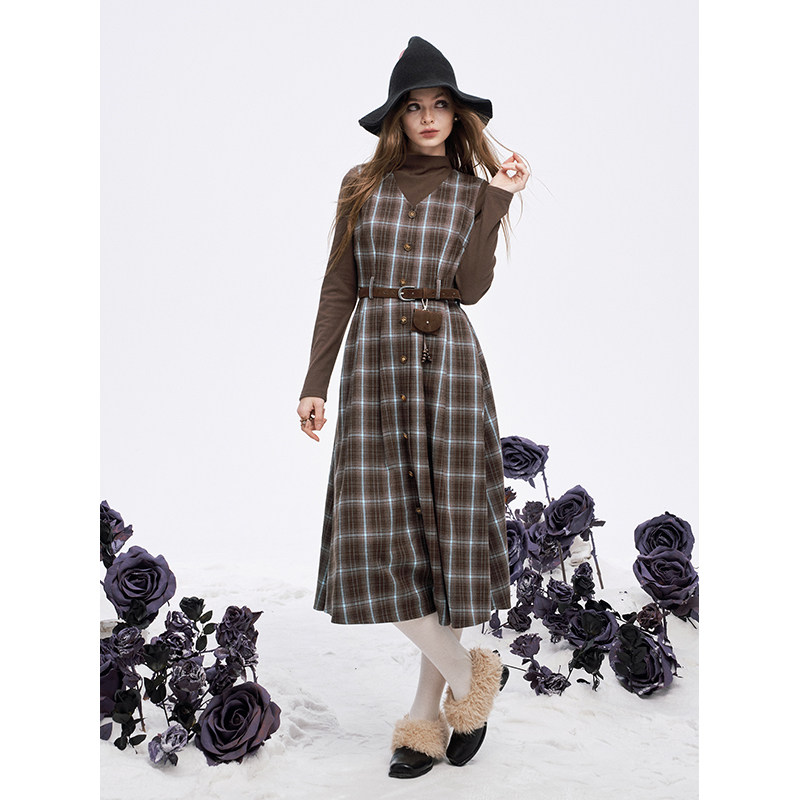 【送腰带】妖精的口袋格纹背心裙打底衫两件套2025年冬季新款套装