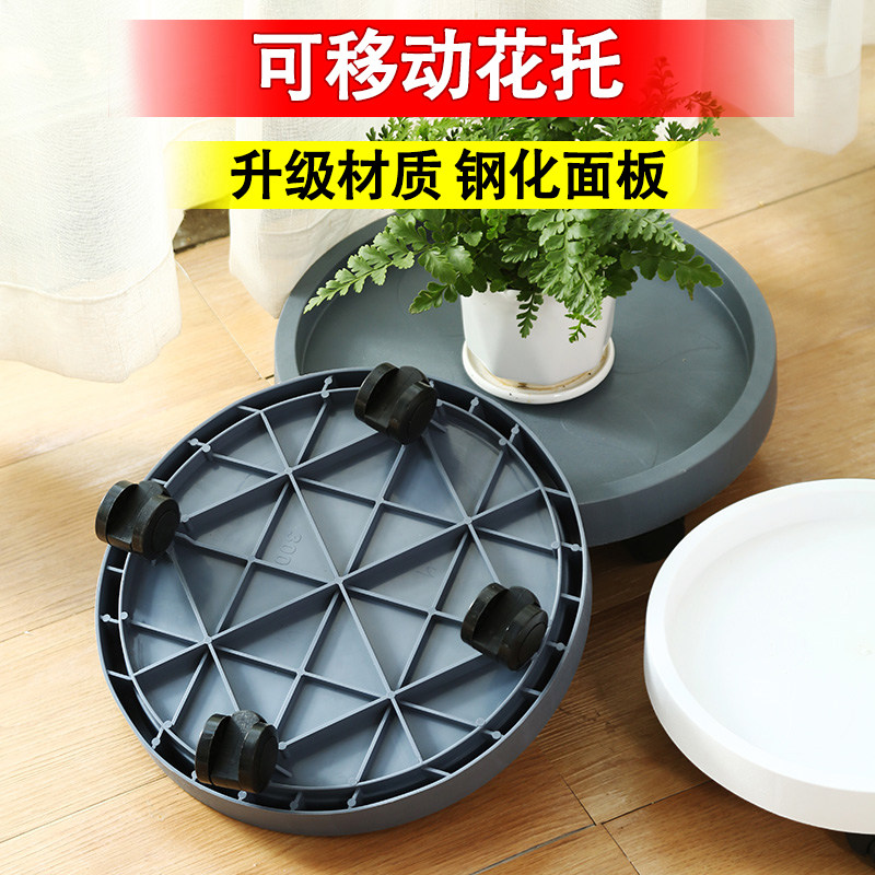 圆形加厚花盆托盘带轮可移动底座塑料底托万向轮底部滚轮钢化方形