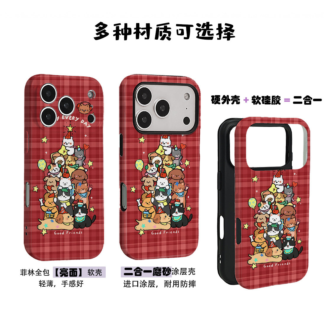 卡通可爱格纹叠叠乐菲林二合一手机壳适用苹果17nova14华为p70mate60小米15opporen14ovivo荣耀300iPhone16