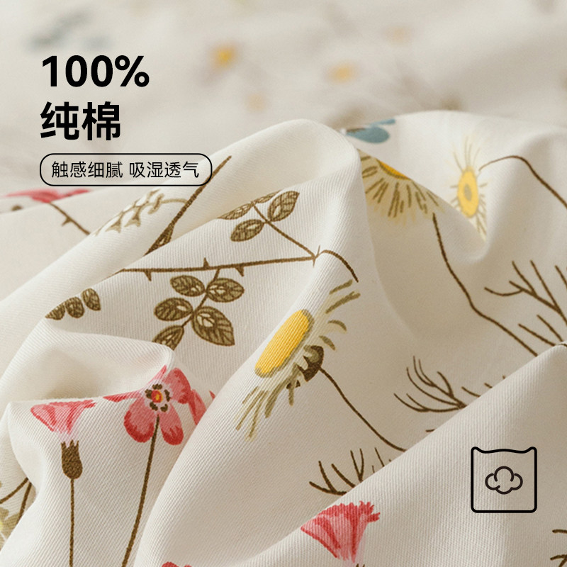 猫人100%棉40支印花四件套全棉2026年新款套件可机洗床单碎花被套