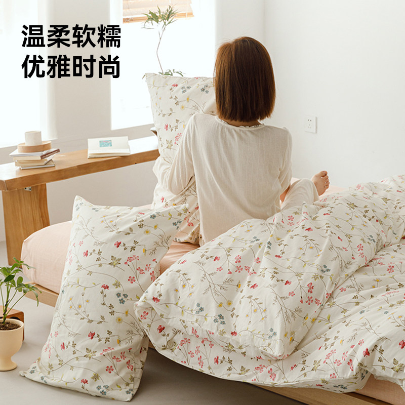A类水洗棉双层纱四件套被罩非全棉纯棉床单人学生宿舍被套三件套