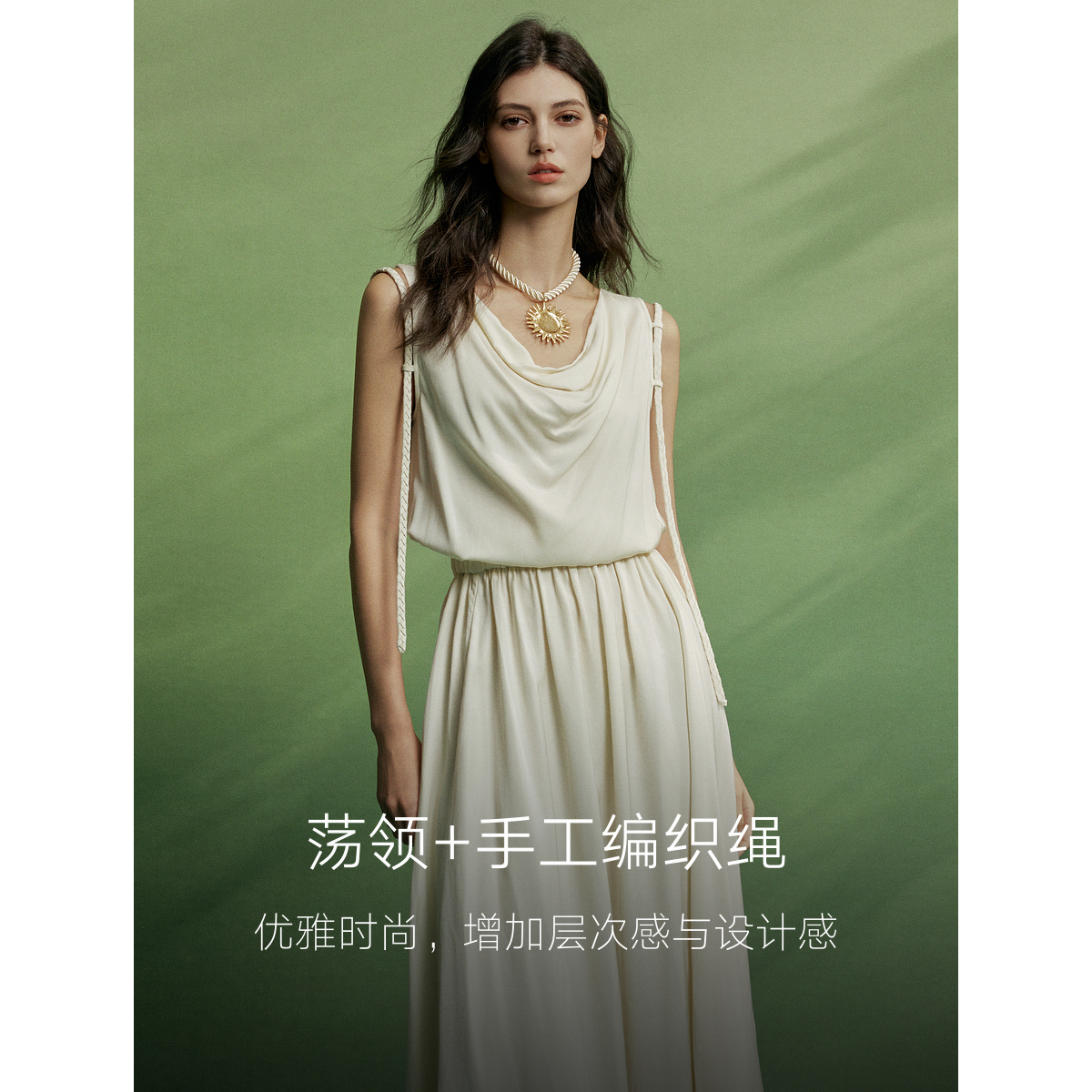 【欧若 商场同款】ELLE优雅无袖连衣裙女2025夏新款天丝亚麻长裙