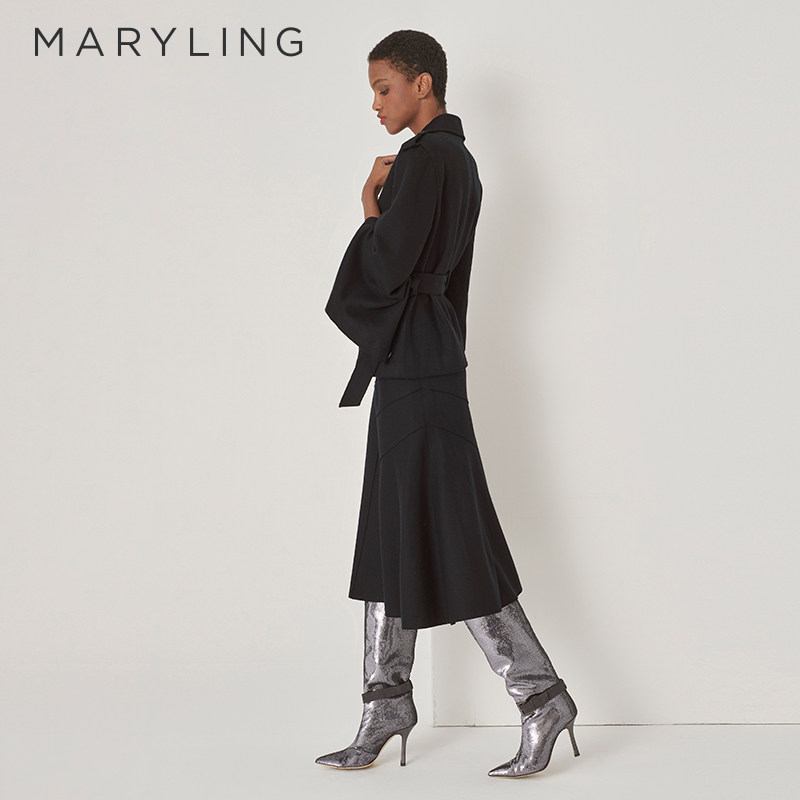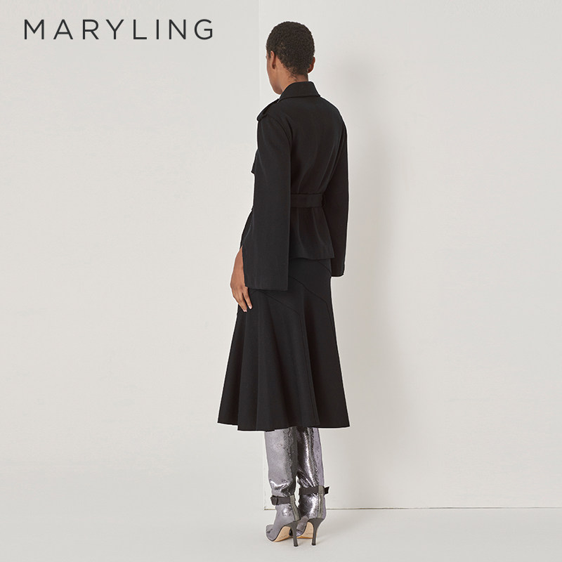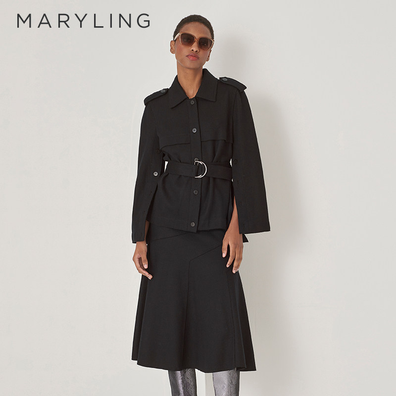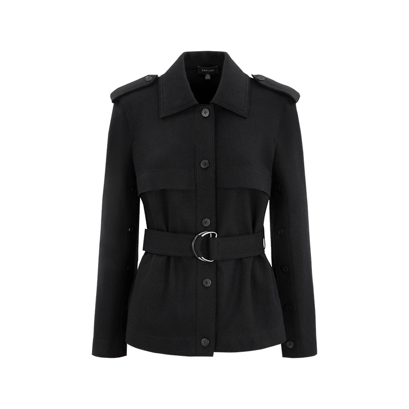 MARYLING玛俪琳秋季新品黑色钮扣袖羊毛短外套A1DGW14200