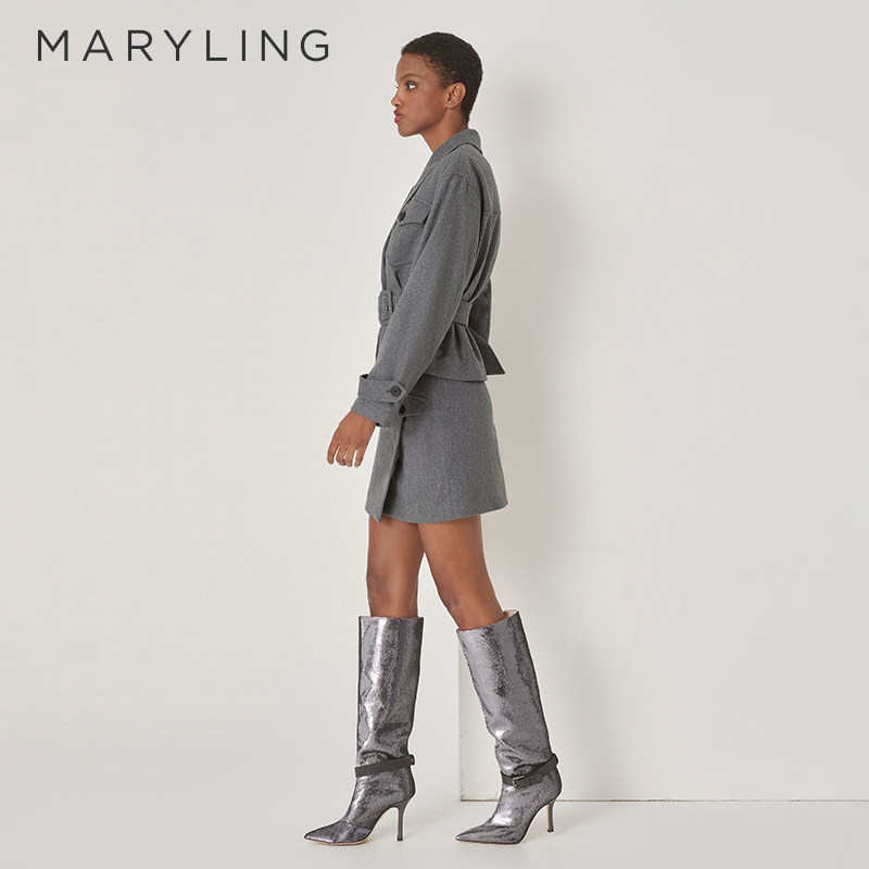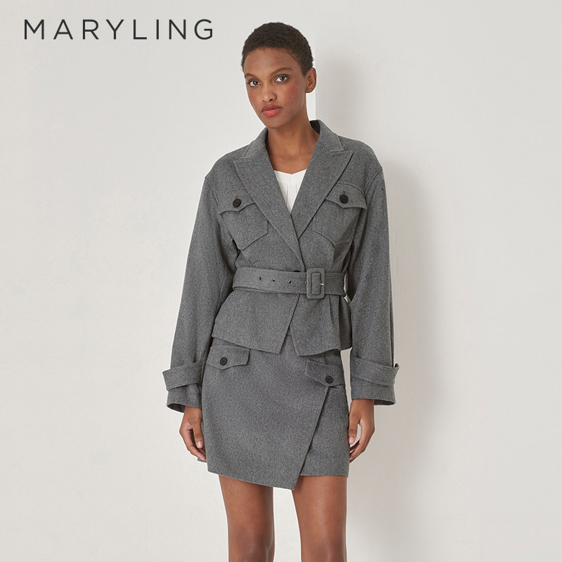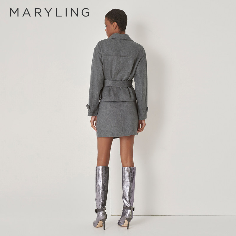 MARYLING玛俪琳秋季新品灰色翻尖领撞色收腰短外套A1DGW14320