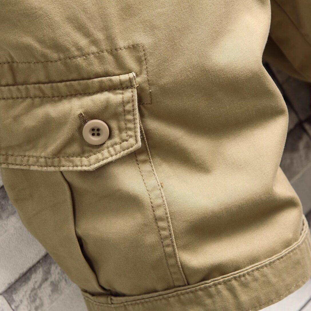 夏季卡其工装多袋中裤男休闲时尚帅气五分裤牛仔宽松直筒马裤耐磨