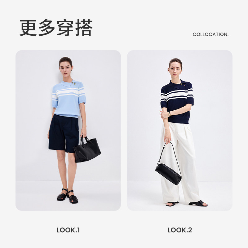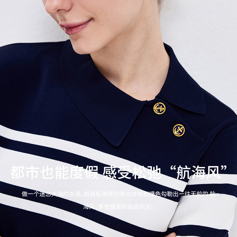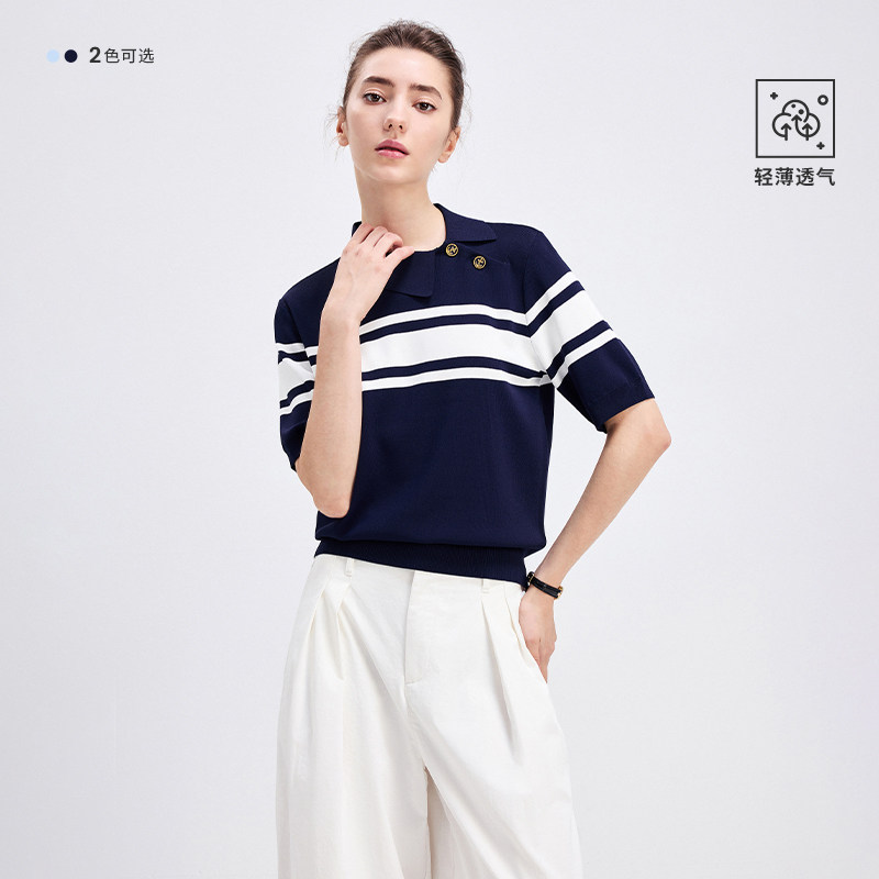 [明星同款]Navigare意大利小帆船夏季条纹短袖polo衫女士针织T恤