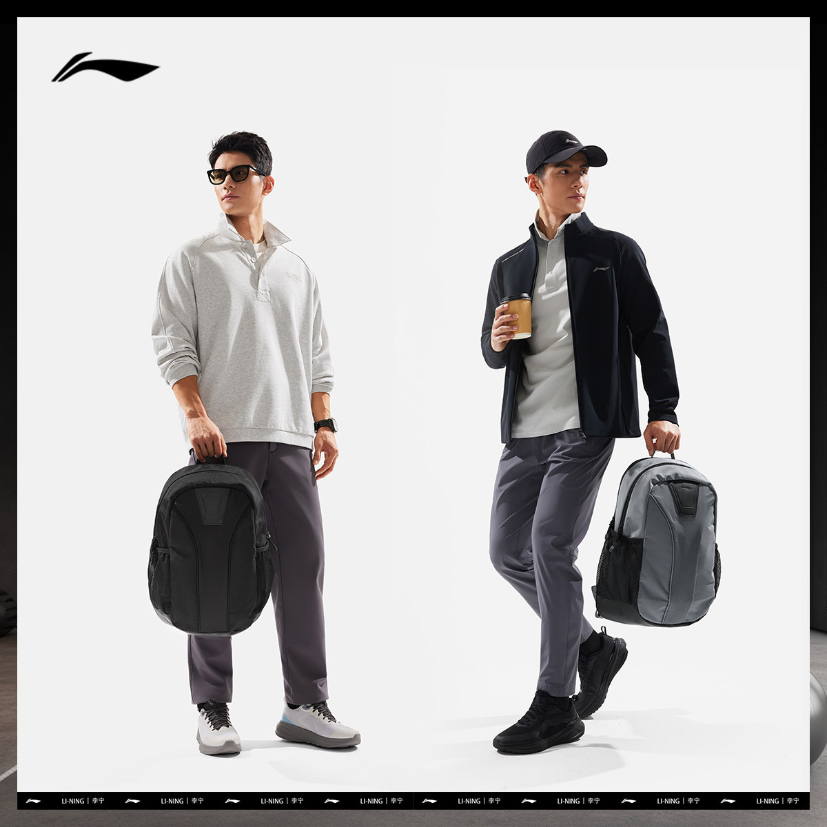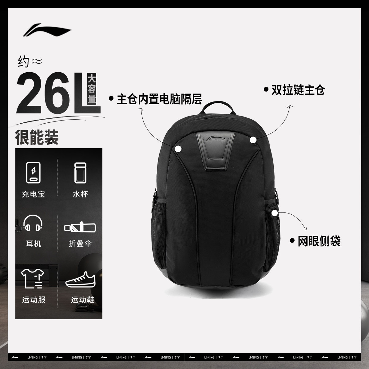 李宁双肩包 健身系列 男女同款大容量简约多仓储存背负舒适电脑包