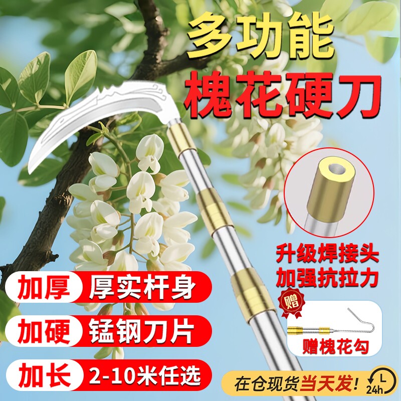 钩洋槐花采摘神器伸缩杆能万加长杆钩子高空摘果杆香椿加粗款镰刀