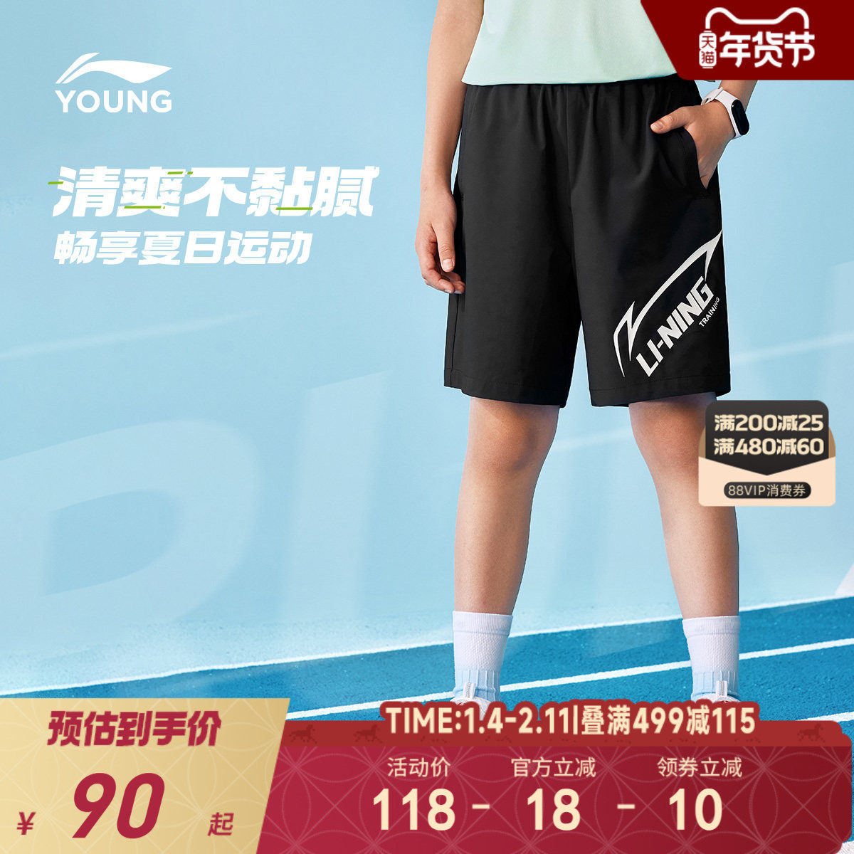 李宁凉感速干运动短裤2025新款夏季男童装女中大童青少年宽松裤子