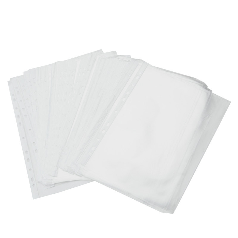 广博11孔文件袋a4打孔保护膜塑料透明插页活页资料袋100个装加厚文件收纳资料册快捞夹袋