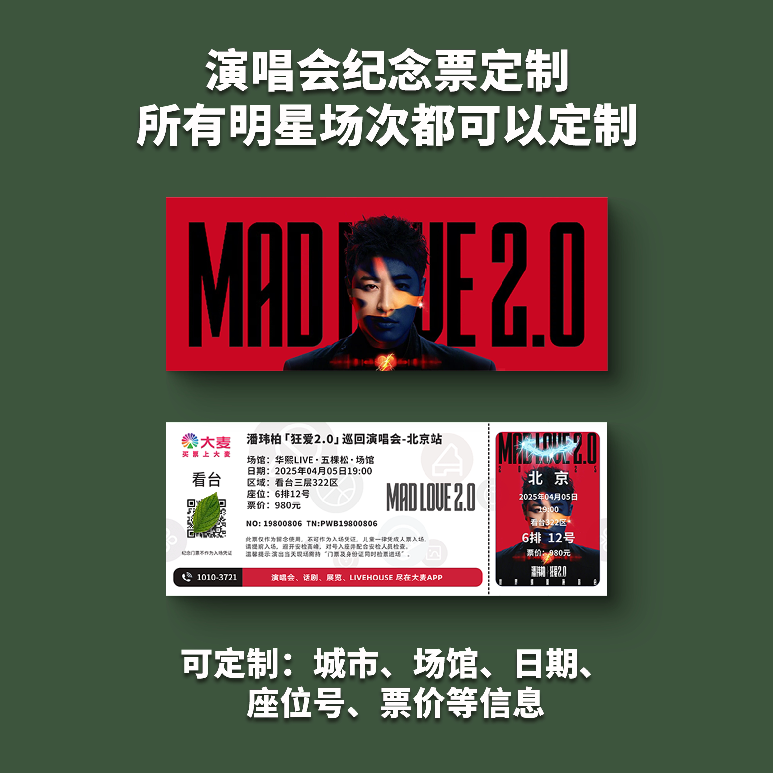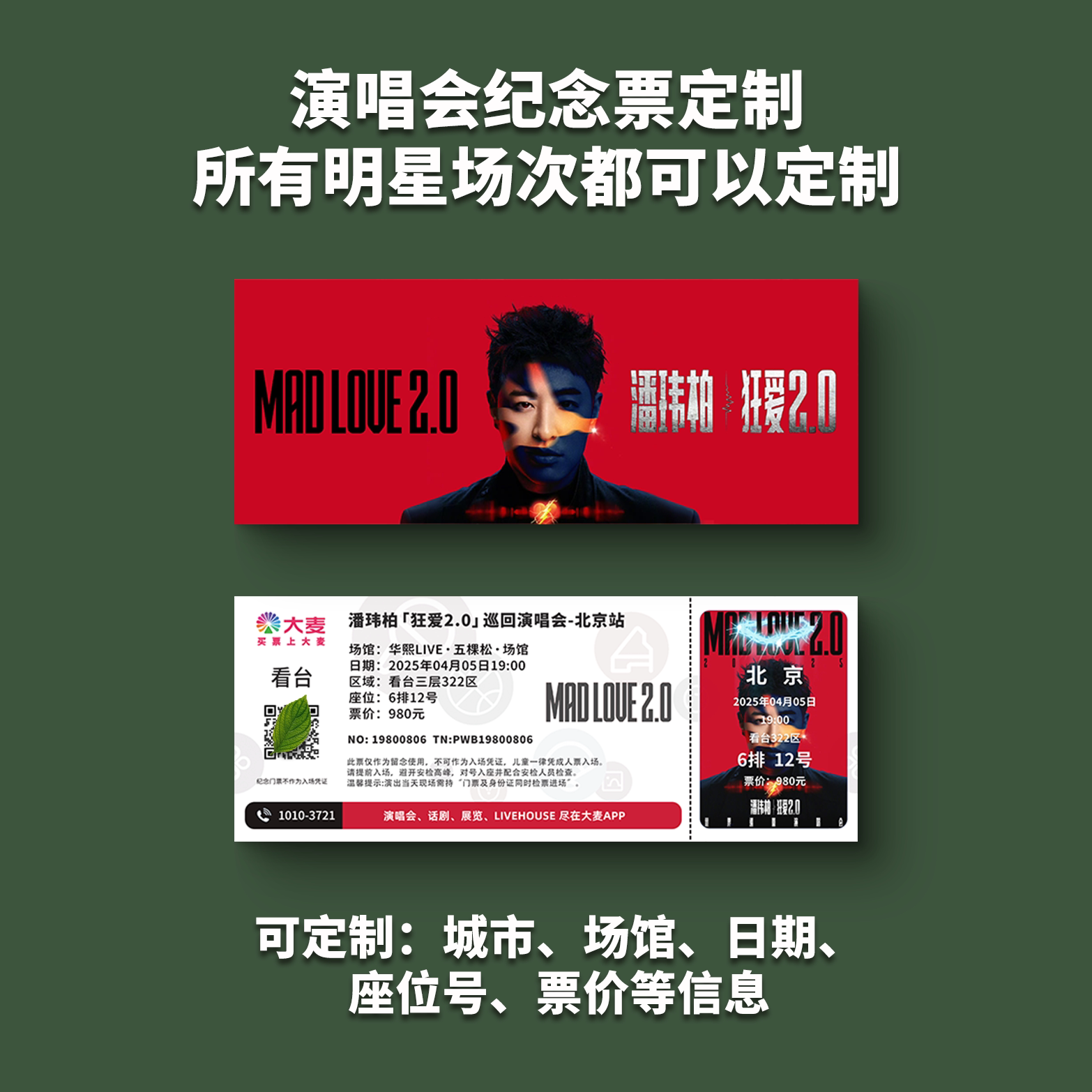 潘玮柏演唱会纸质门票打印纪念票定制周边伴手礼大麦猫眼广州宁波