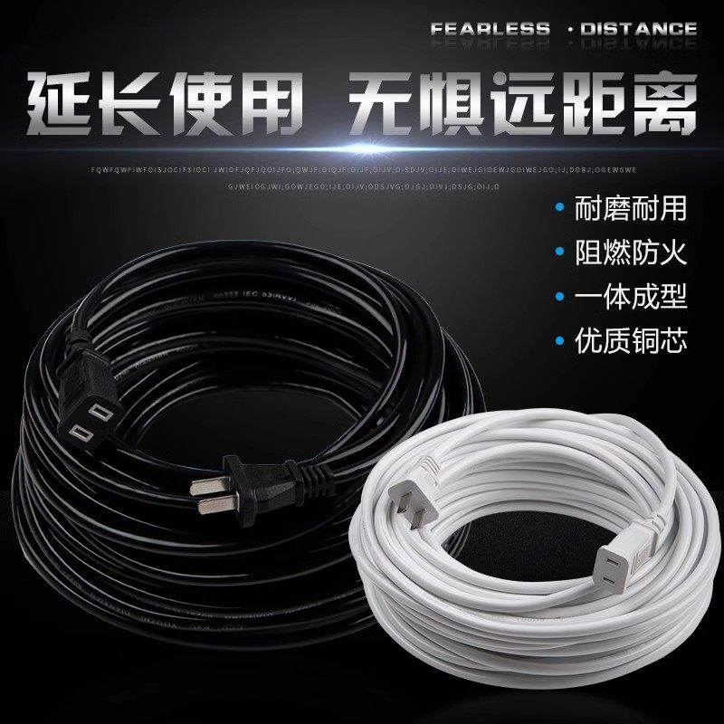 纯铜两芯电源线插头加长线延长线插座连接线板两孔手机风扇延长线