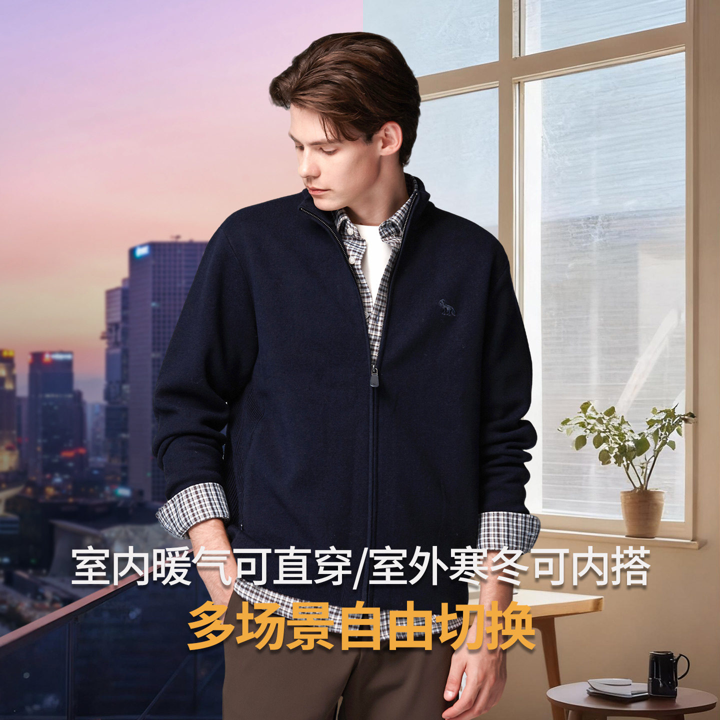 亨利格兰拉链立领羊毛外套男士2025秋冬新款廓形休闲保暖毛衫开衫