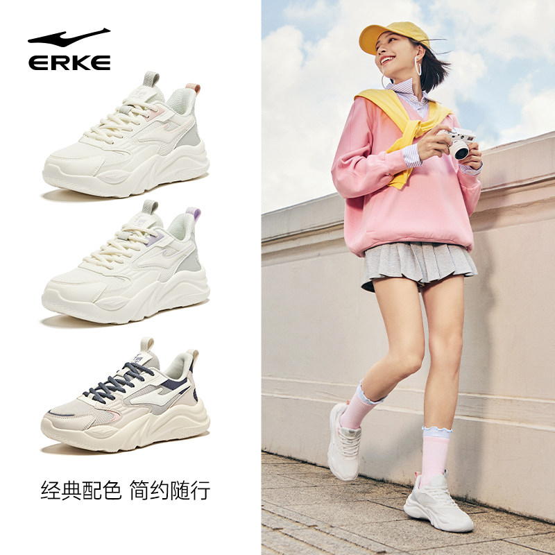 桀骜鸿星尔克运动鞋女鞋秋冬新款百搭轻便休闲鞋软底厚底老爹鞋