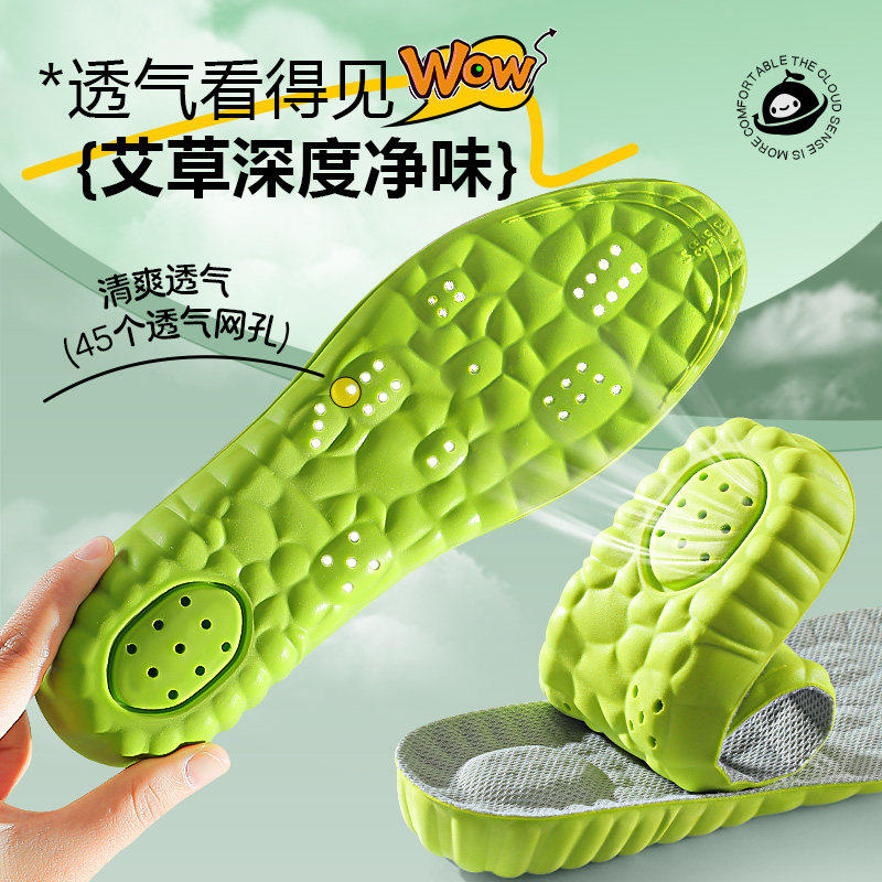 踩屎感不累除臭鞋垫运动气垫减震男女士超软久站艾草防痛脚痛鞋垫