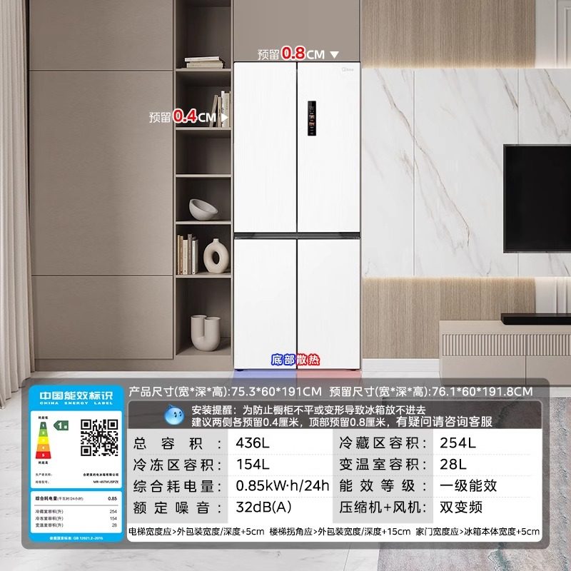 60cm超薄嵌入美的冰箱457十字对开门1级变频风冷无霜家用底部散热