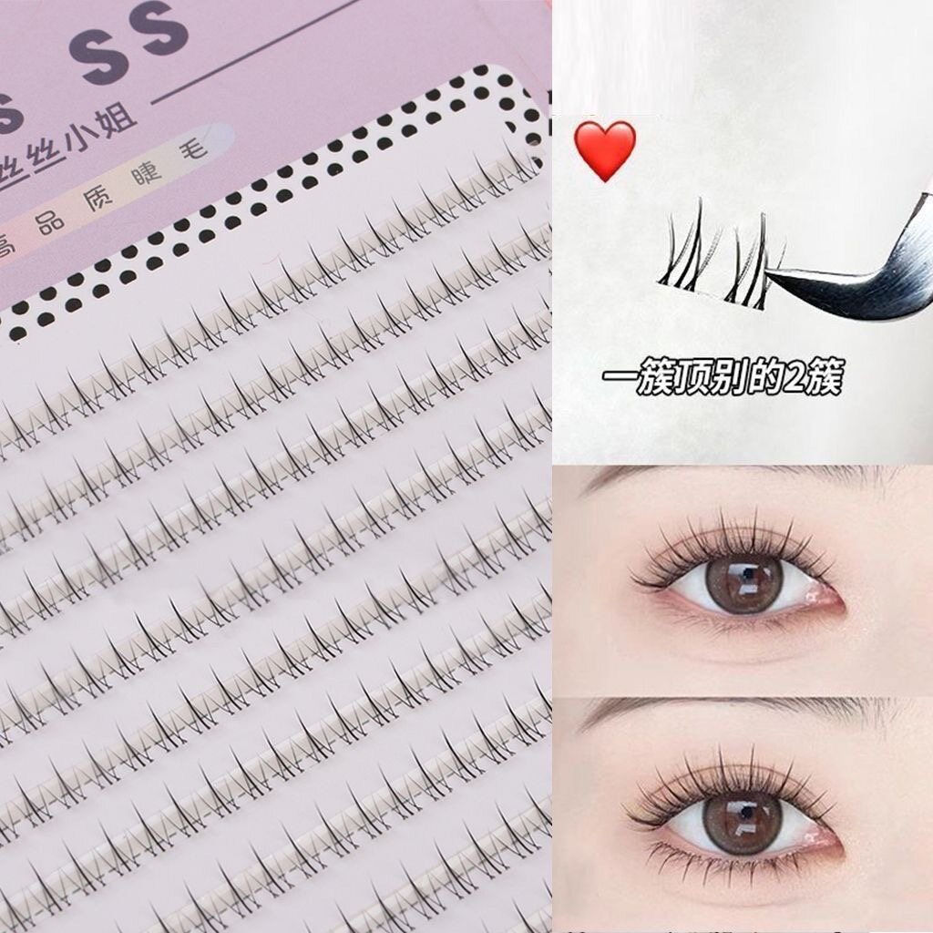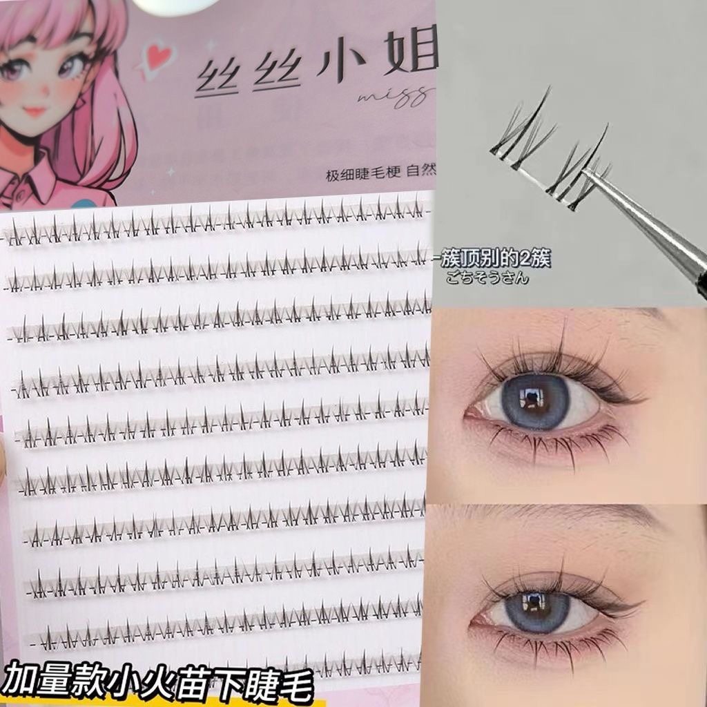 免胶小火苗下睫毛单簇自然分段仿真假睫毛懒人透明梗假睫毛大容量