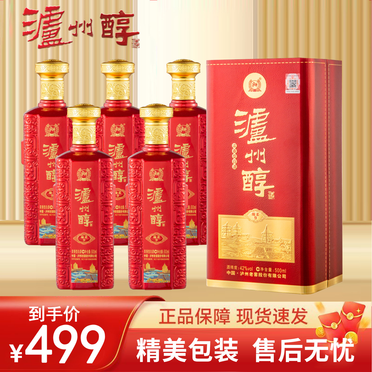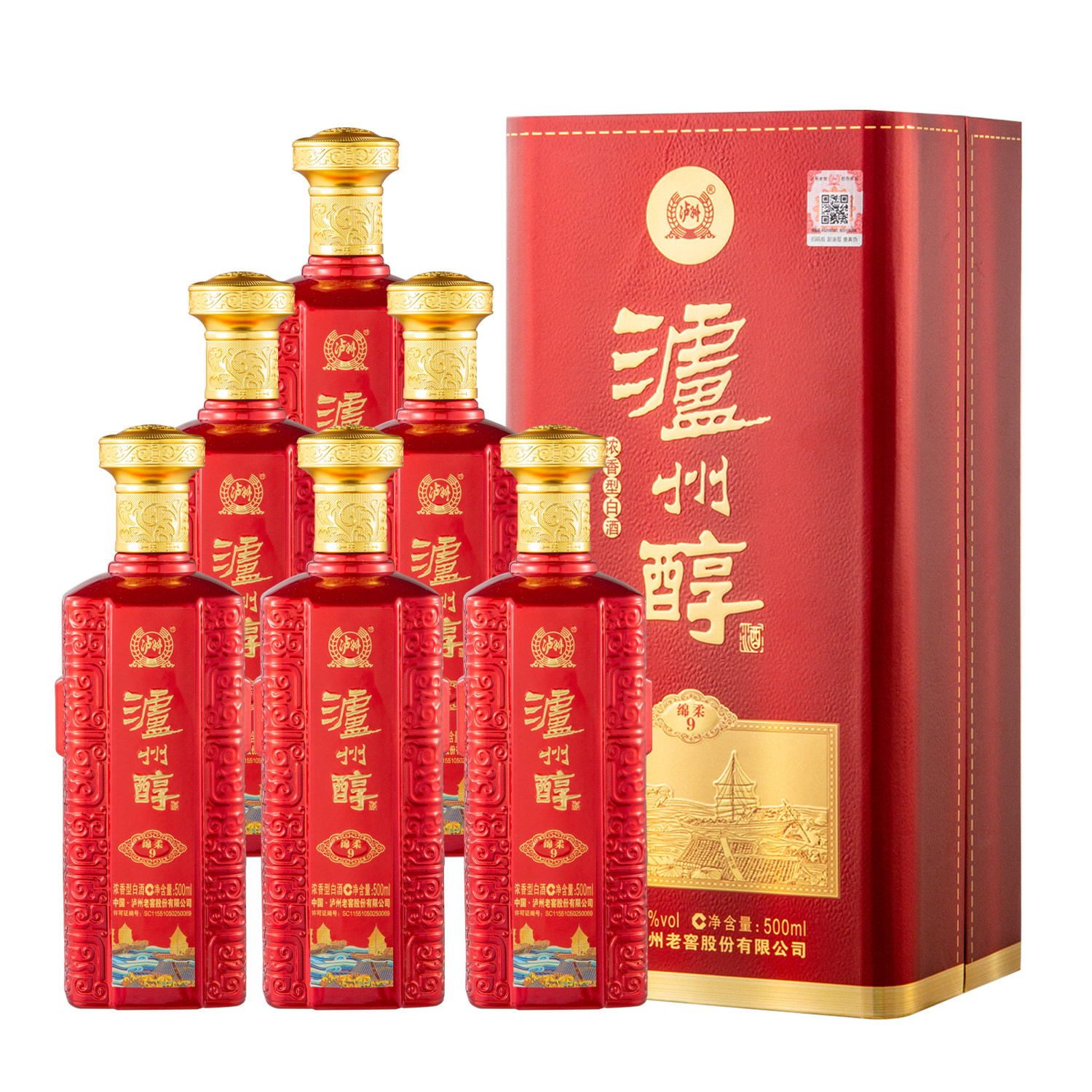 泸州老窖泸州醇绵柔9浓香型白酒整箱500ml*6瓶装送礼自饮高档礼盒