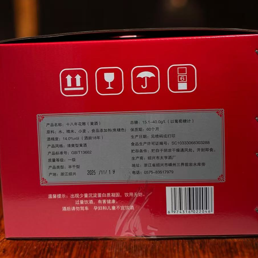 正宗绍兴黄酒十八年陈酿原浆黄酒手工冬酿糯米酒礼盒装6瓶