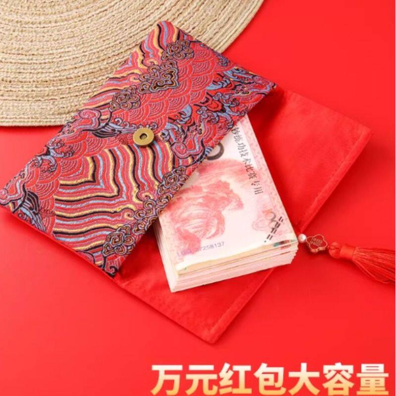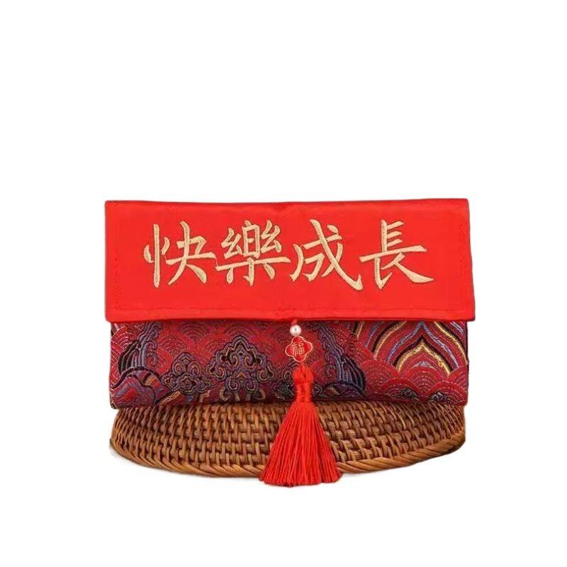 2026锦缎万元布艺红包宝宝生日快乐创意一周岁刺绣长绳利是封流苏