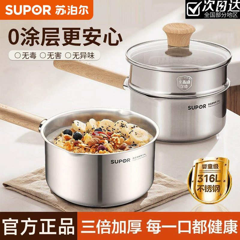 苏泊尔汤锅316L不锈钢加厚家用蒸锅煮粥锅煮锅蒸煮双耳电磁炉田
