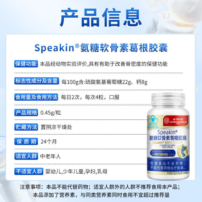 北京同仁堂氨糖软骨素钙片中老年护关节疼痛补硫酸安糖官方旗舰店