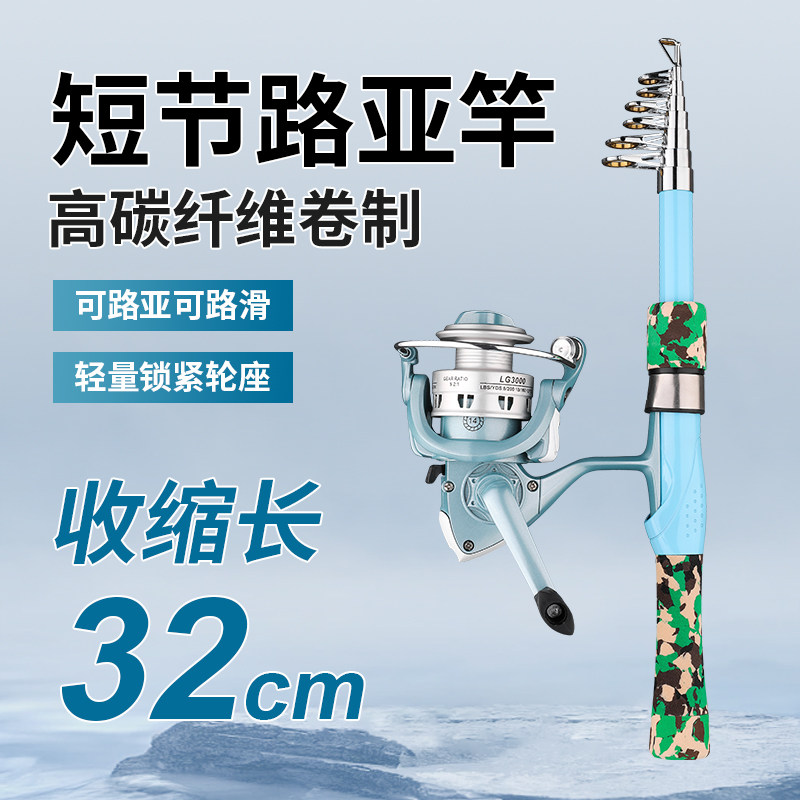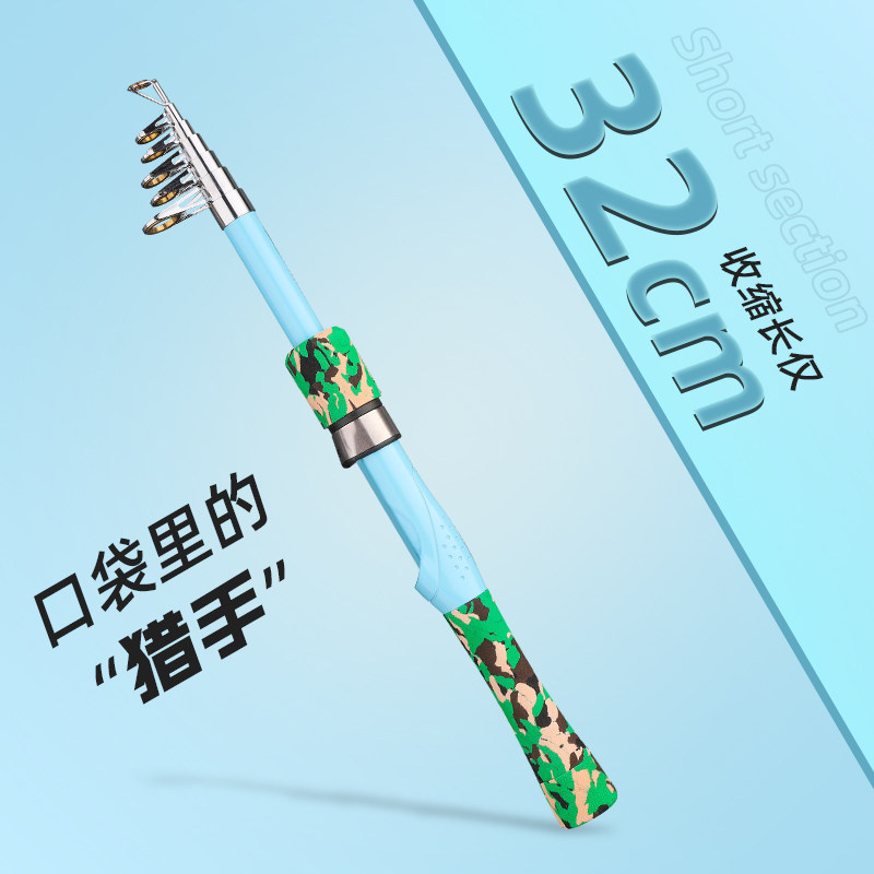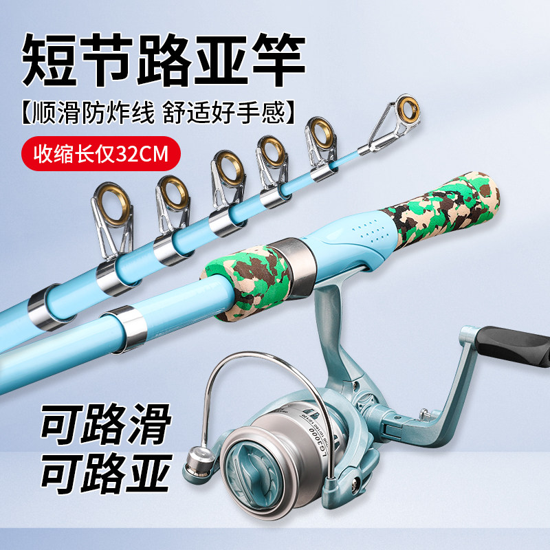 便携直柄收缩迷你路亚迷彩伸缩短节小路亚1.6米收缩32cm抛竿远投