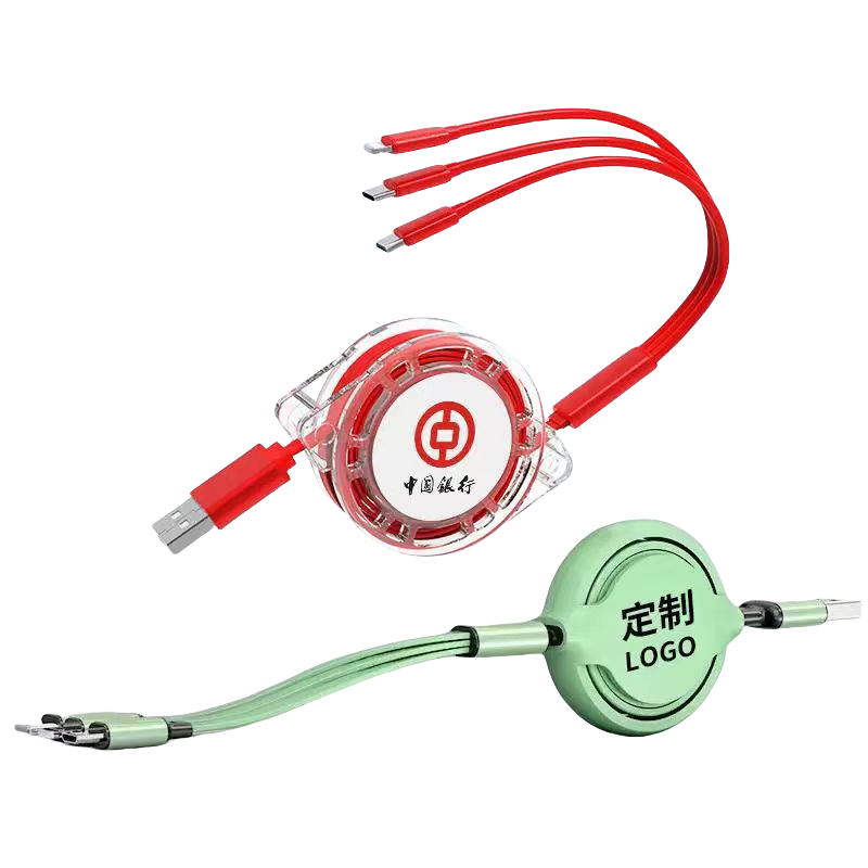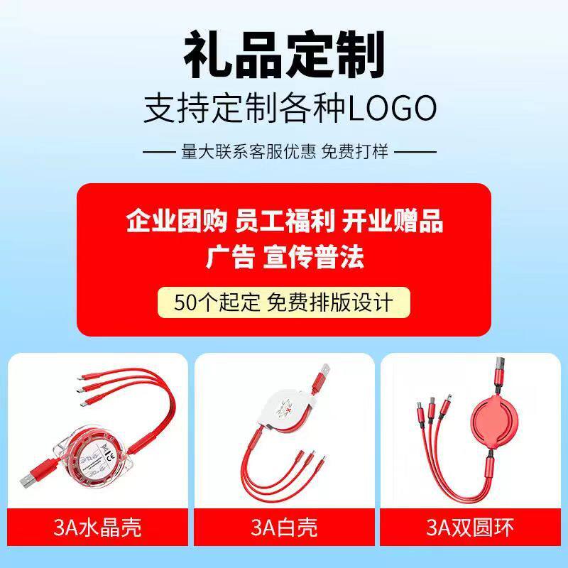 数据线三合一定制logo多功能快充伸缩一拖三充电线定制印logo展会宣传小礼品开业推广拓客活动赠品地推伴手礼