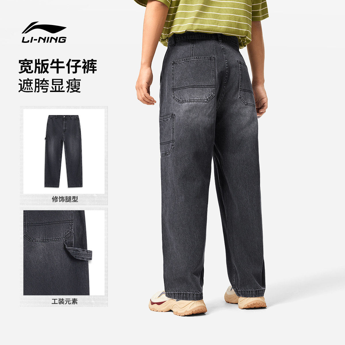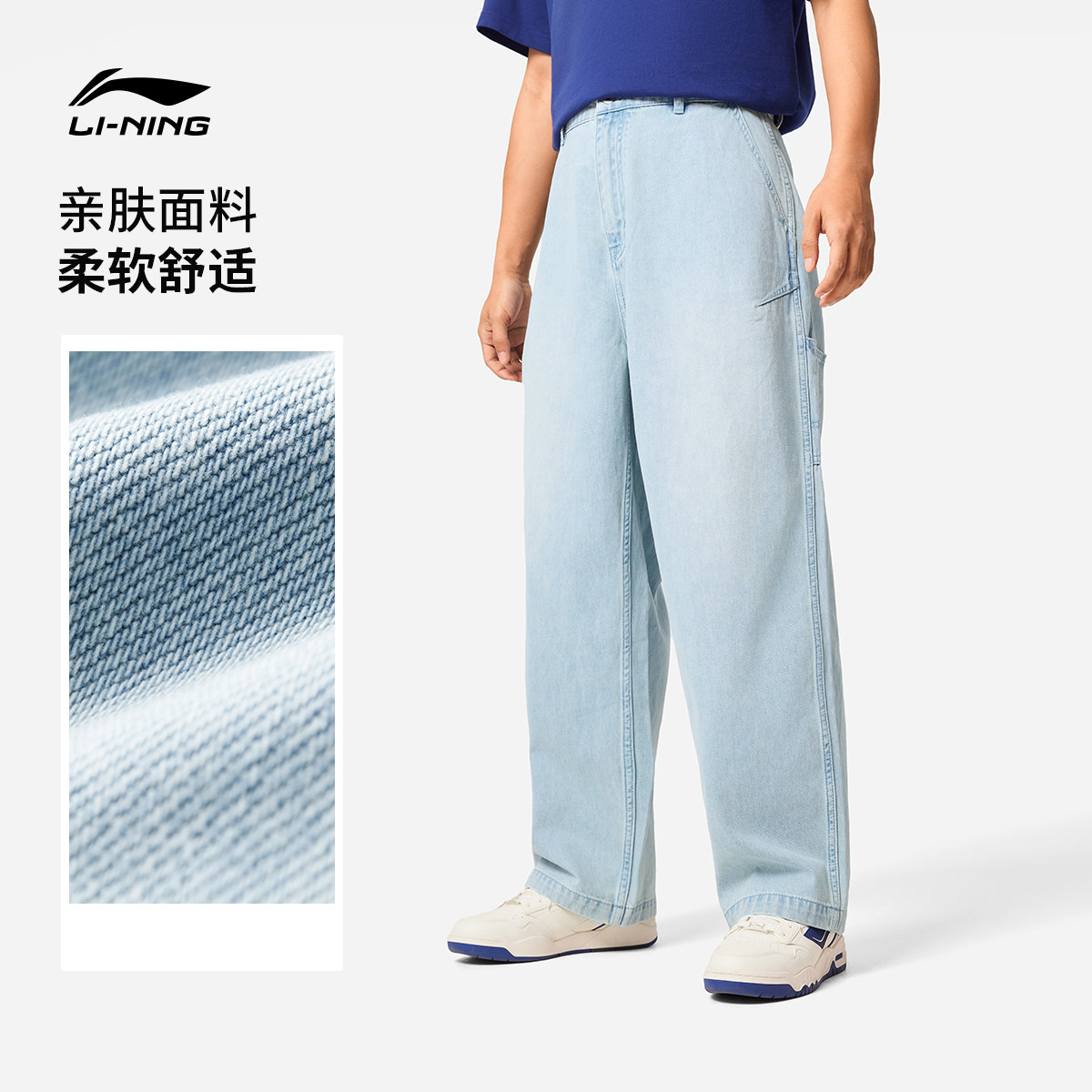 李宁牛仔裤官方男装足球风水洗宽松长裤春秋休闲裤直筒裤子运动裤