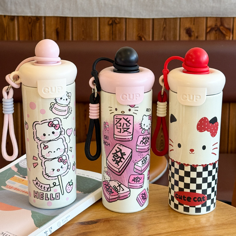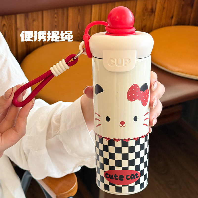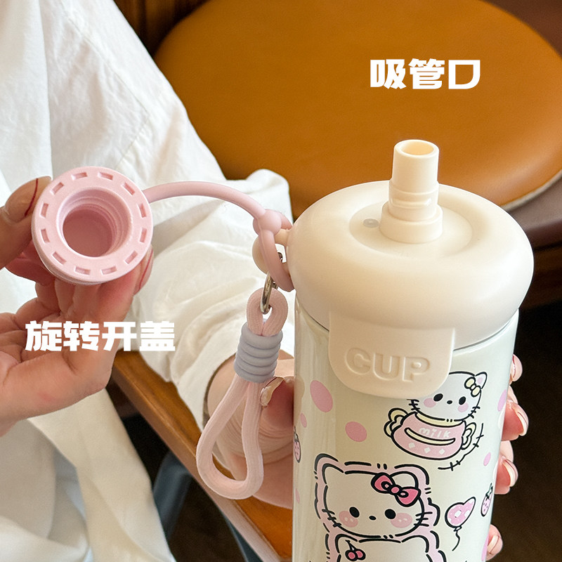 可爱保温杯水杯女生高颜值2025新款学生上学专用大容量吸管杯便携