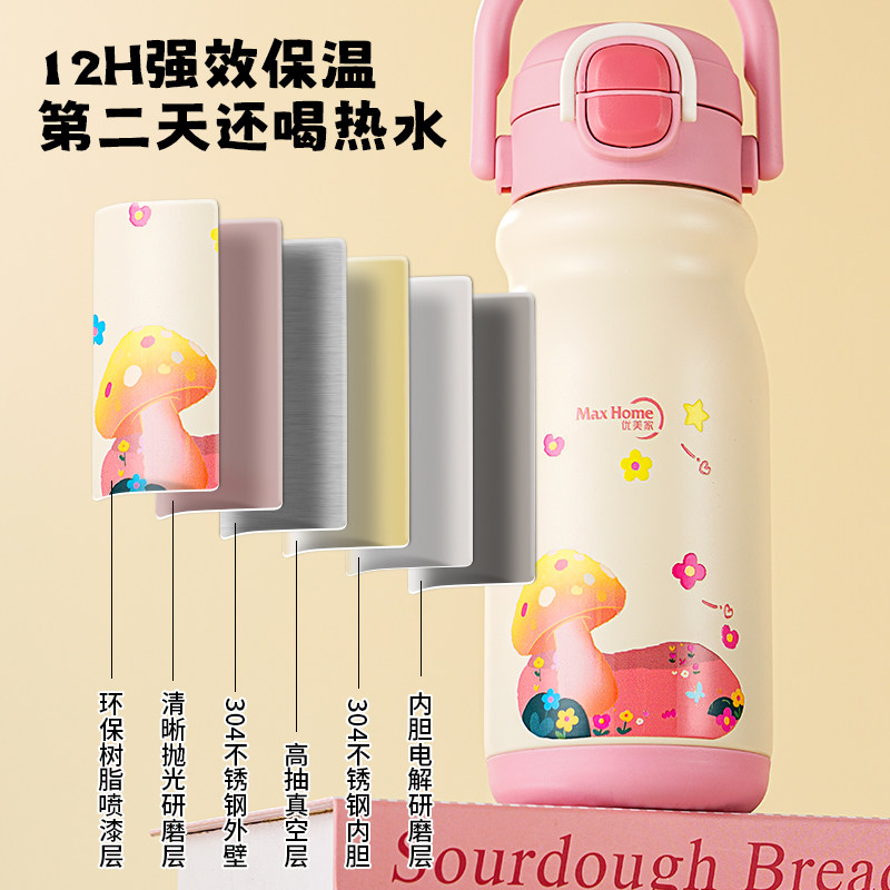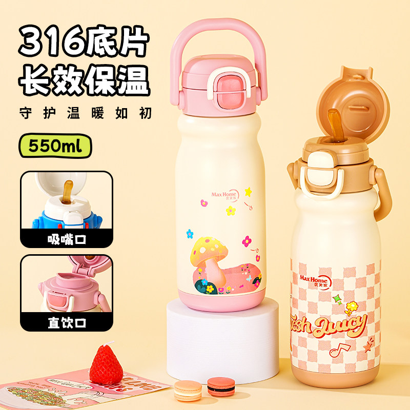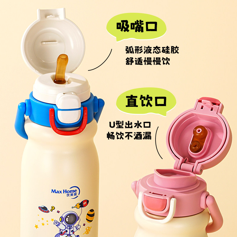 优美家保温杯高颜值316不锈钢儿童学生吸管水杯大容量杯子上学