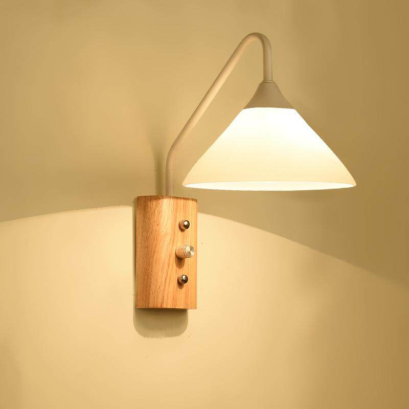带开关壁灯现代简约实木艺墙灯温馨客厅书房阅读背景墙过道床头灯